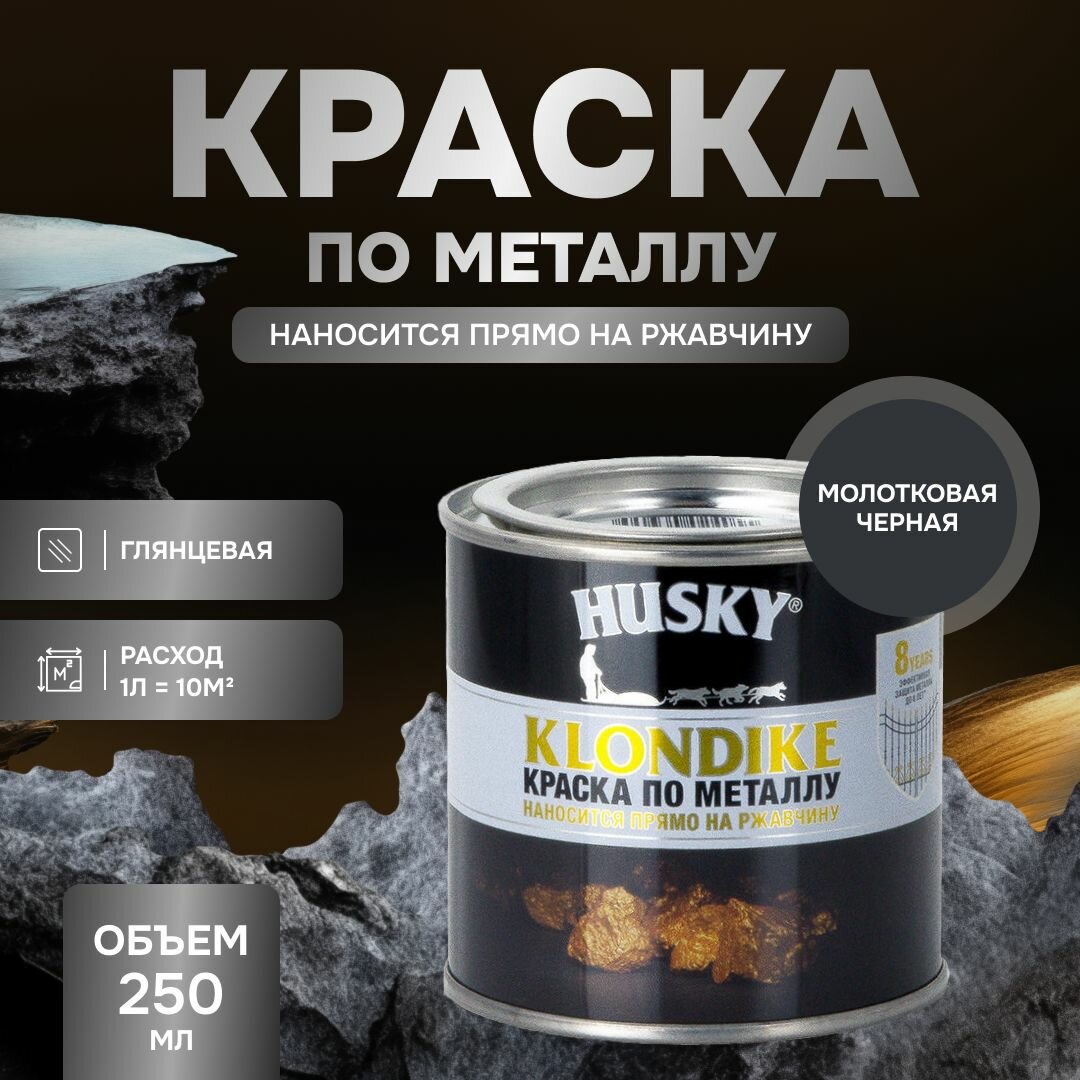 Купить HUSKY KLONDIKE Грунт-эмаль 3 в 1, краска по металлу молотковая, по ржавчине, декоративная, черная (250мл)