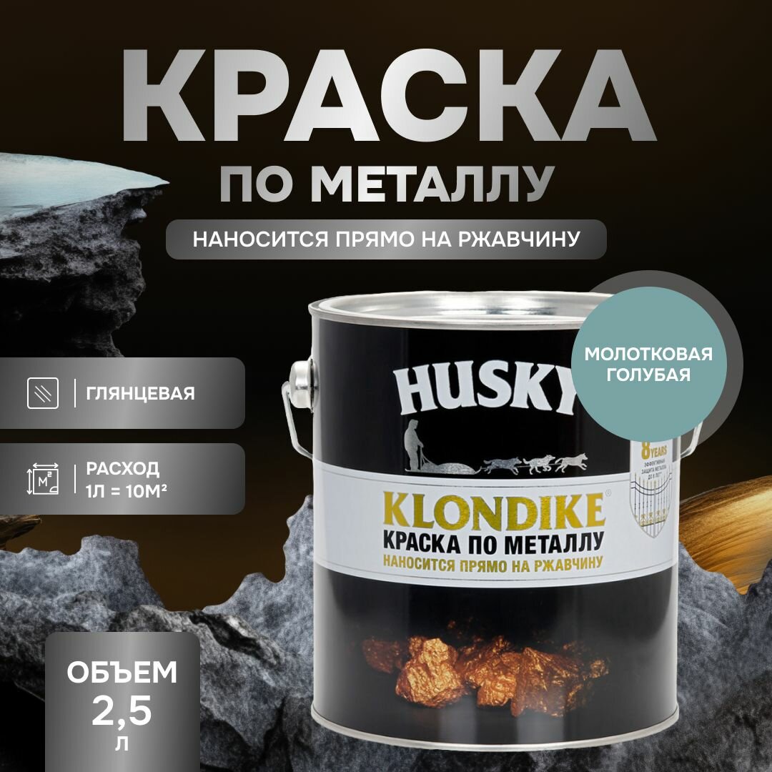 Купить HUSKY KLONDIKE Грунт-эмаль 3 в 1, краска по металлу молотковая, по ржавчине, декоративная, голубой (2,5л)
