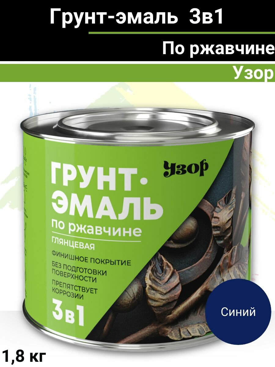 Грунт-эмаль по ржавчине 3 в 1 глянцевая синяя "Узор" 1,8 кг. интересное: