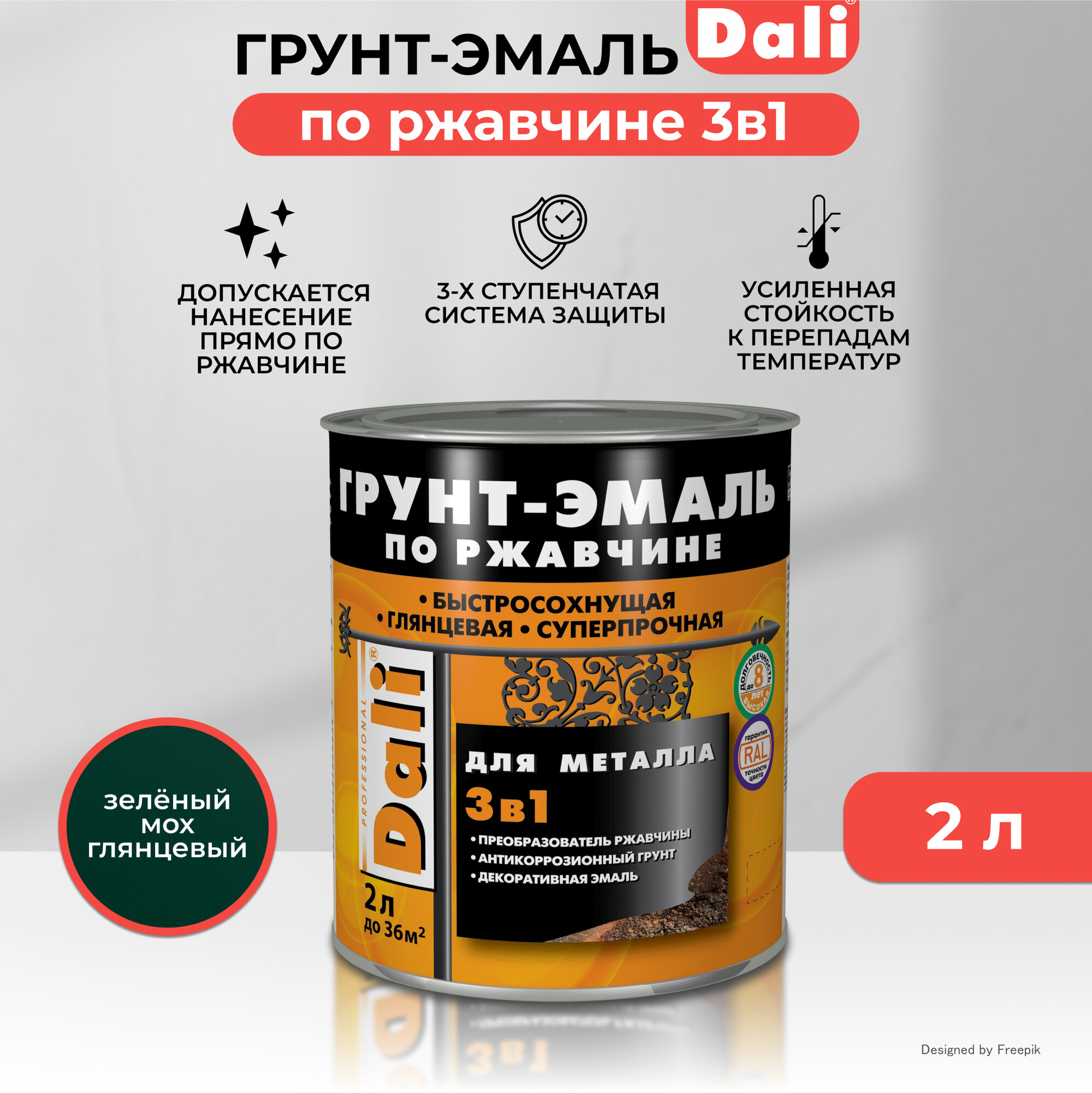 Купить Грунт- эмаль ПО ржавчине "DALI" 3 В 1 зеленый МОХ (RAL 6005) 2 Л (3) "рогнеда"
