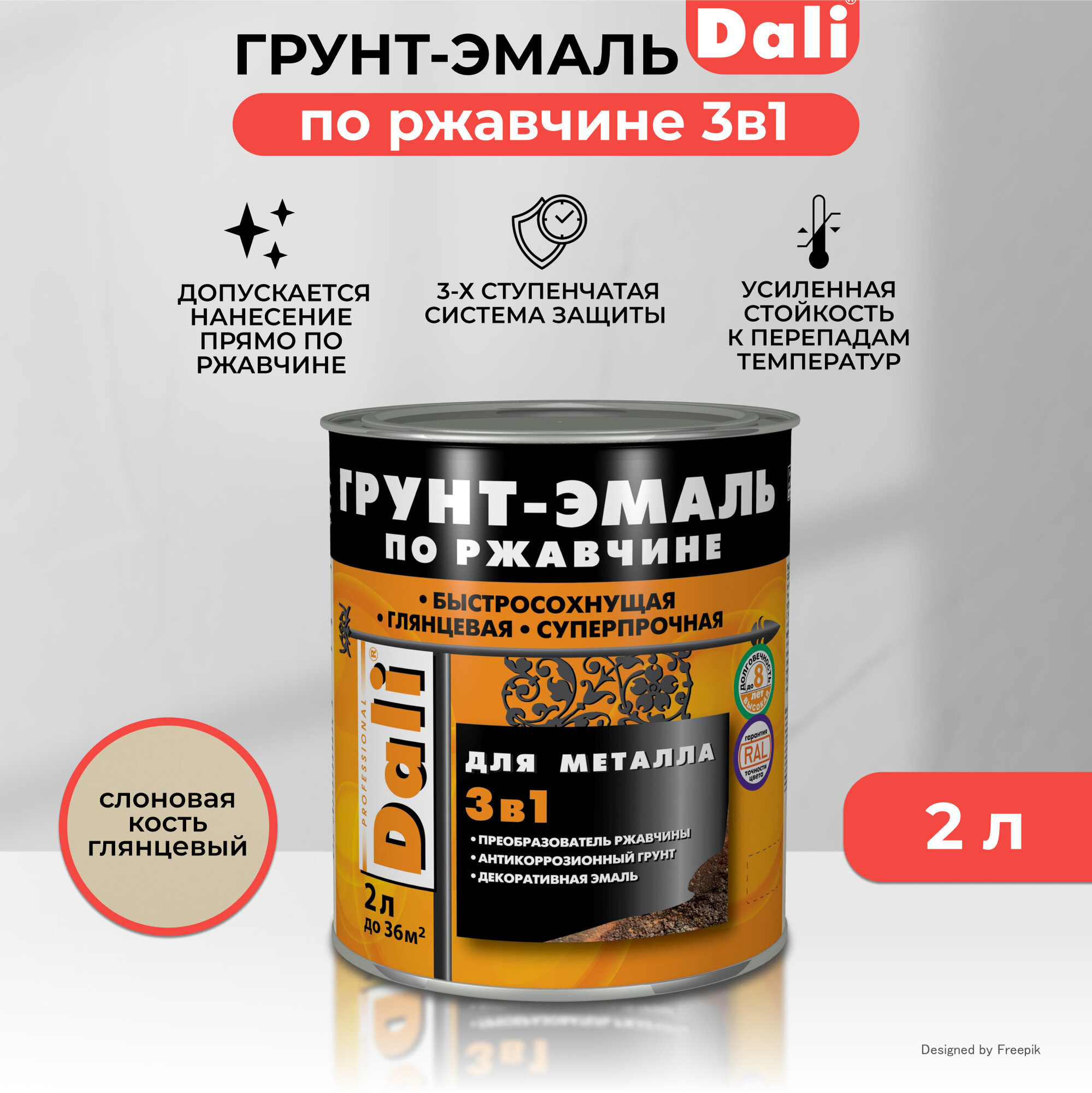 Купить Грунт- эмаль ПО ржавчине "DALI" 3 В 1 слоновая кость (RAL 1014) 2 Л (3) "рогнеда"