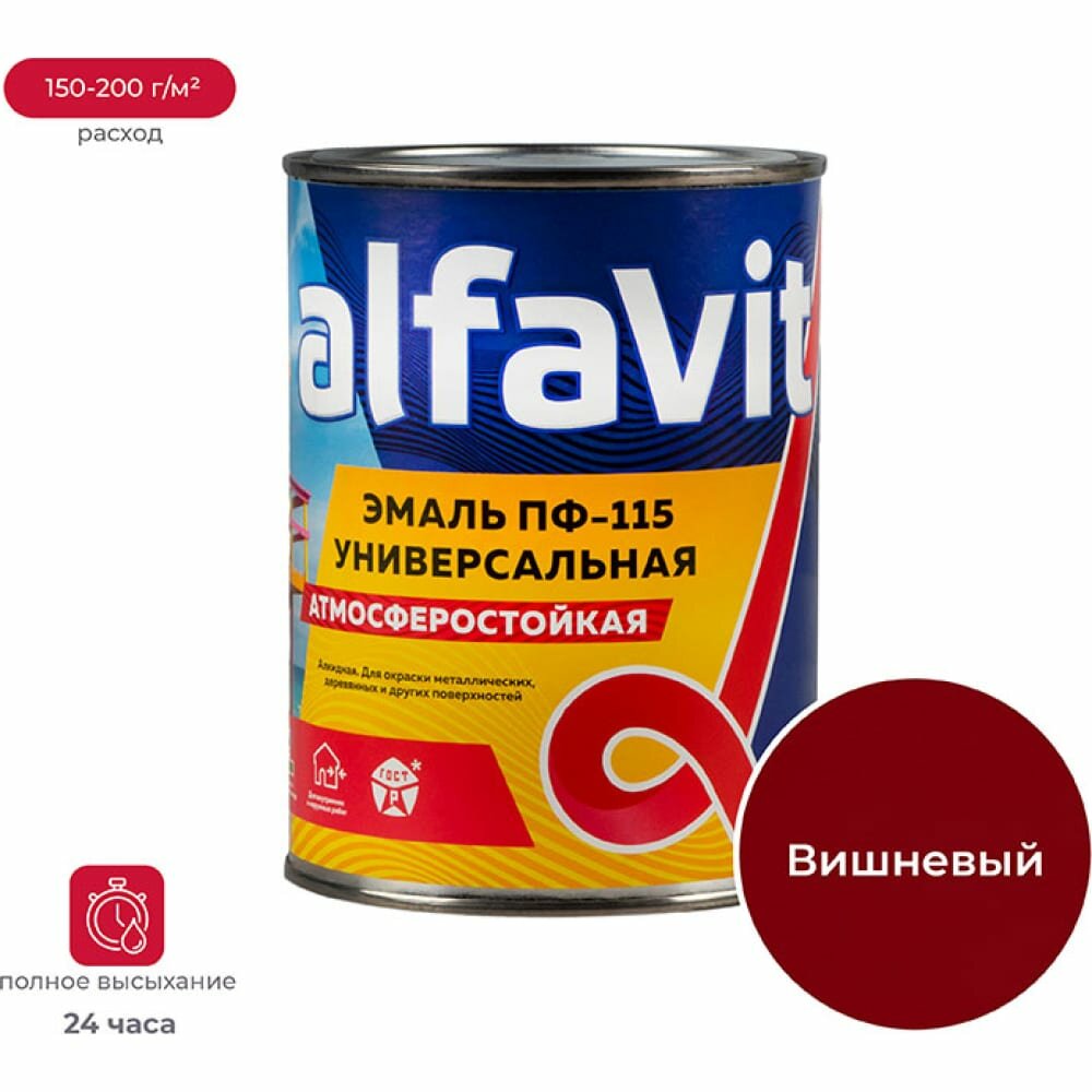 Купить Эмаль ПФ-115 универсальная Alfavit серия Альфа, алкидная, глянцевая, 0,9 кг, вишневая, 1шт