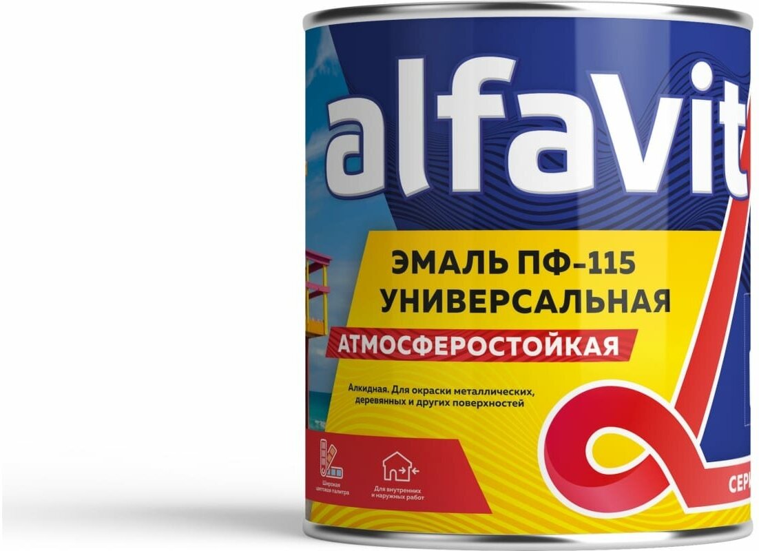 Купить Эмаль ПФ-115 универсальная Alfavit серия Альфа, алкидная, глянцевая, 0,9 кг, серая, 1шт