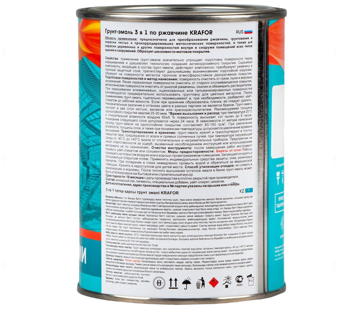 Ниже Вы можете прочитать отзывы на Грунт-эмаль по ржавчине 3 в 1 Krafor, алкидная, глянцевая, 1 кг, голубая, ознакомится с подробными характеристиками, посмотреть интересные обзоры и фотографии на Грунт-эмаль по ржавчине 3 в 1 Krafor, алкидная, глянцевая, 1 кг, голубая.