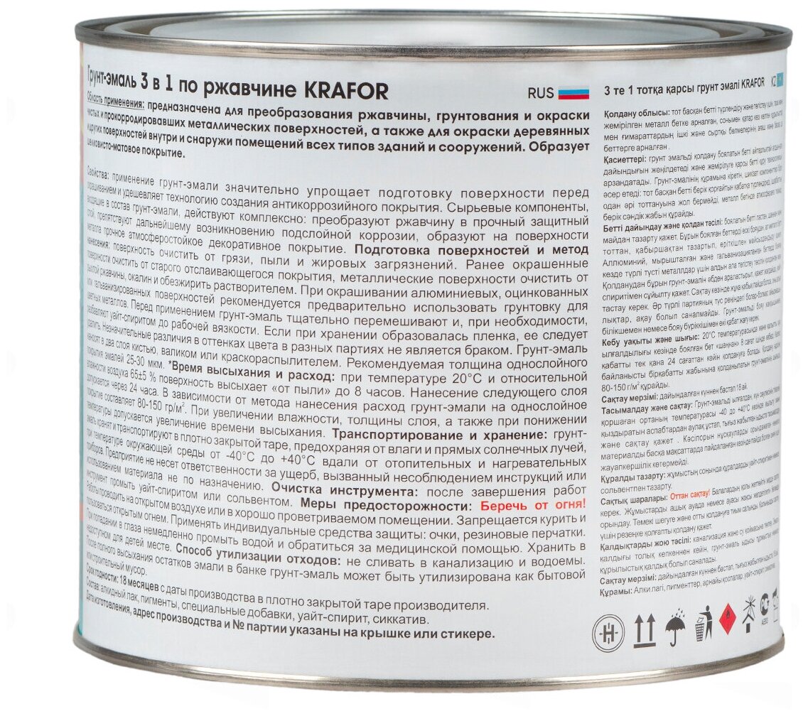 Грунт-эмаль по ржавчине 3 в 1 Krafor, алкидная, глянцевая, 1 кг, шоколадная, 1шт