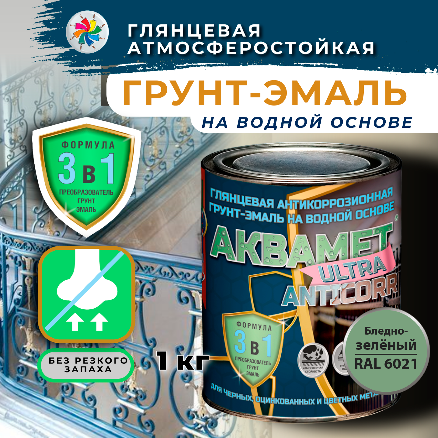 Купить Грунт-эмаль Красковия Аквамет ULTRA, краска глянцевая без запаха, для металла, 1 кг, зеленая