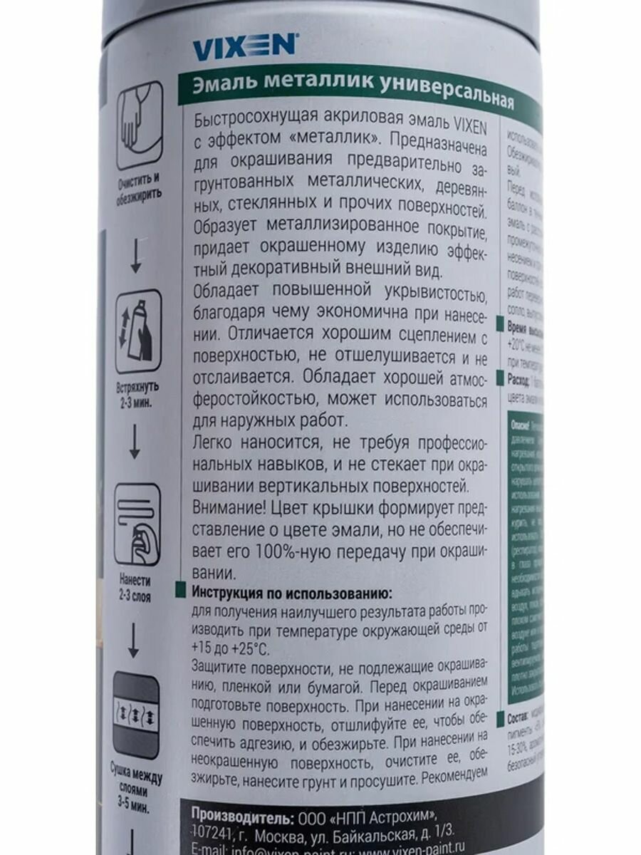 Эмаль универсальная металлик VIXEN VX19130 хром зеркальный, аэрозоль 520мл интересное: