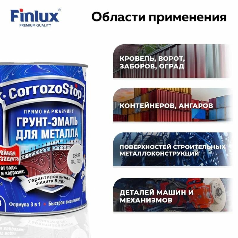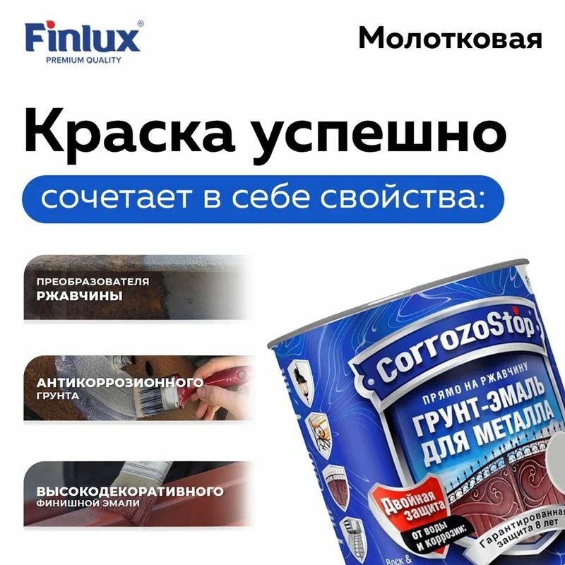 Универсальная грунт-эмаль 3в1 по металлу и ржавчине Finlux F-148, глянцевая, ral 7042, 0,75 л