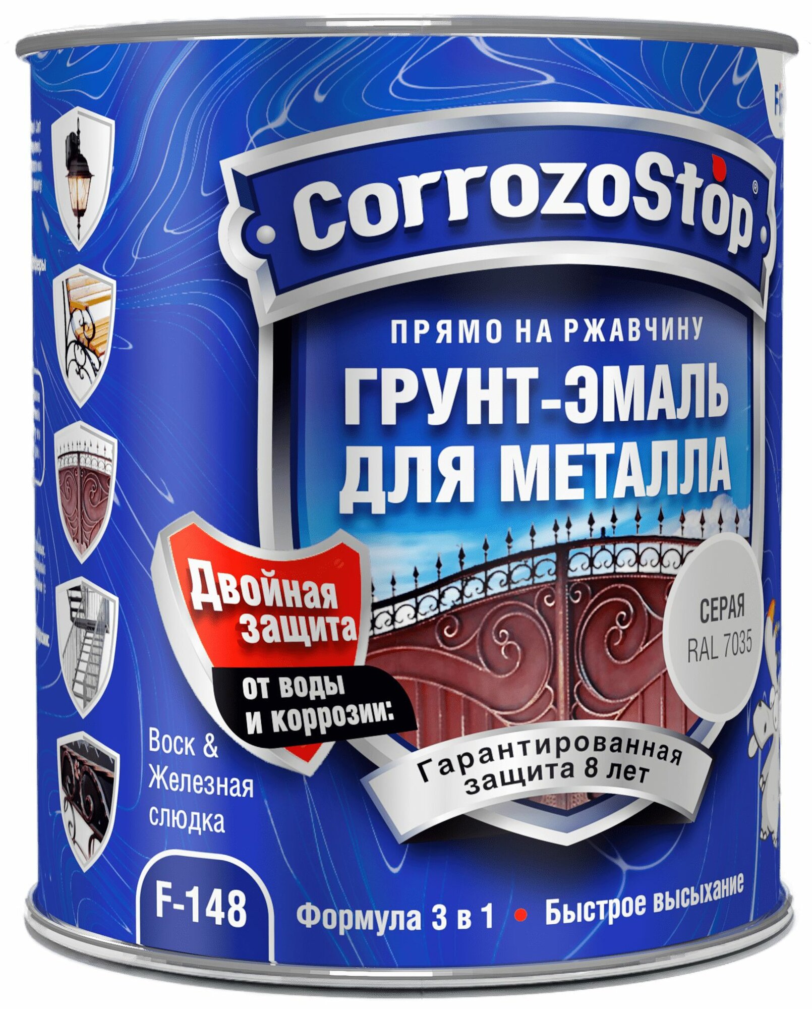 Грунт-эмаль Finlux F-148 Gold по ржавчине 3 в 1, краска по металлу, глянцевое покрытие, 2.5 кг, цвет серый