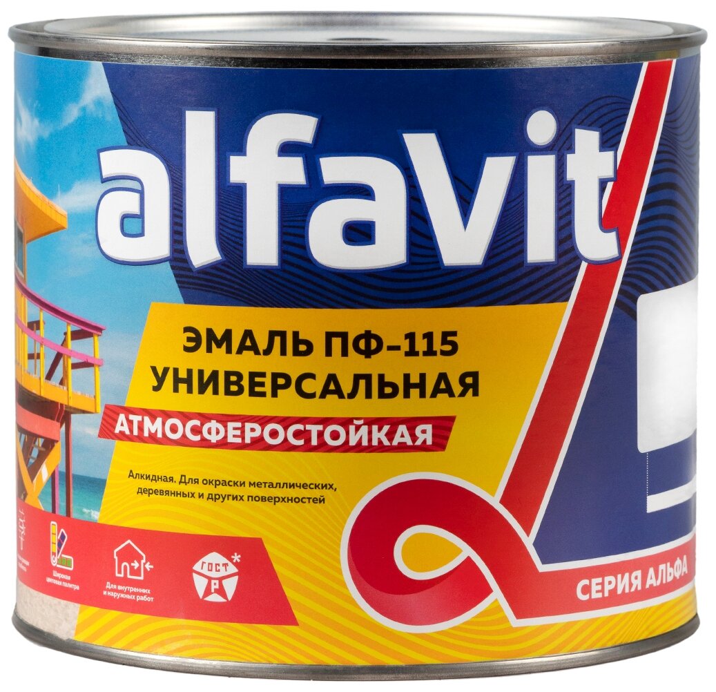 Купить Эмаль ПФ-115 универсальная Alfavit серия Альфа, алкидная, матовая, 1,9 кг, белая, 1шт, жестяная банка.