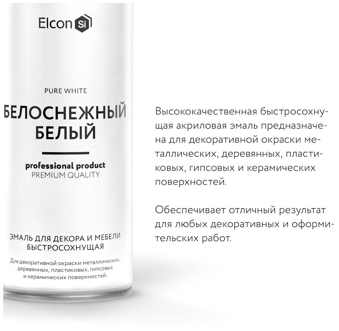Купить Эмаль для декора и мебели быстросохнущая Elcon, белоснежный белый, аэрозоль, 520 мл
