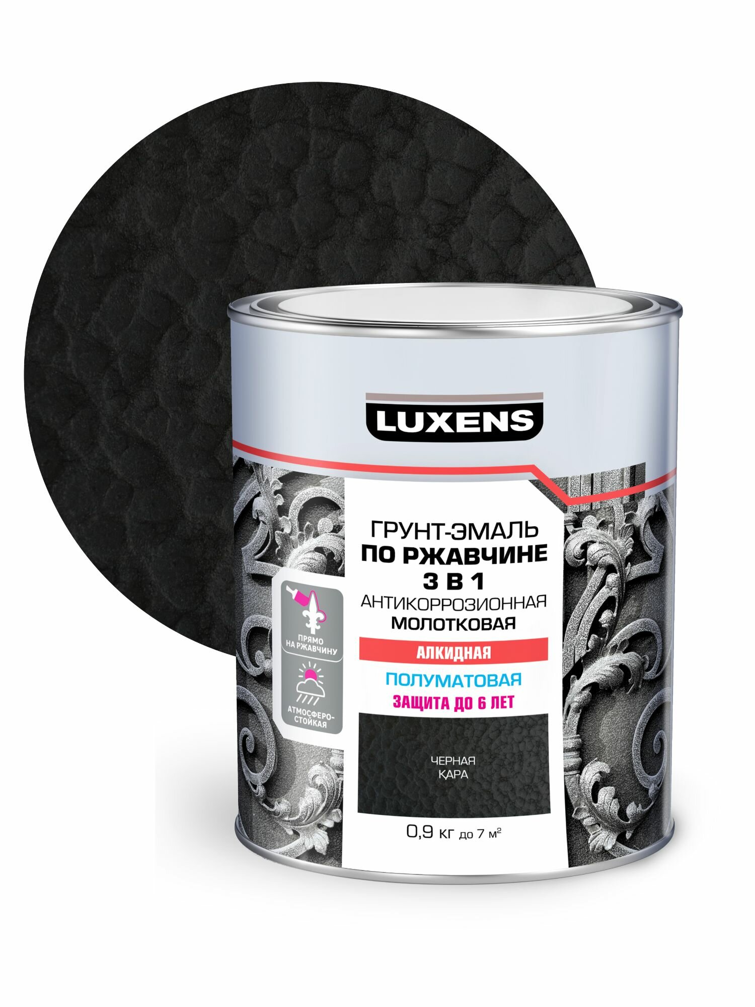 Купить Грунт-эмаль по ржавчине 3 в 1 Luxens молотковая цвет черный 0.9 кг