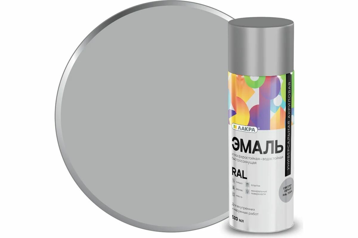 Купить Эмаль аэрозольная Светло-серый 520 мл Лакра Color универсальная 125