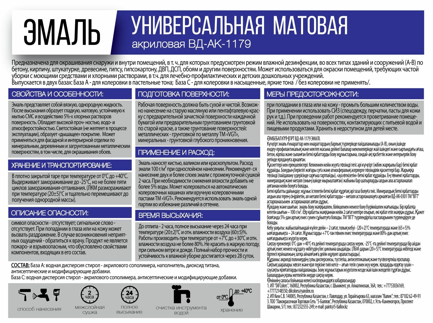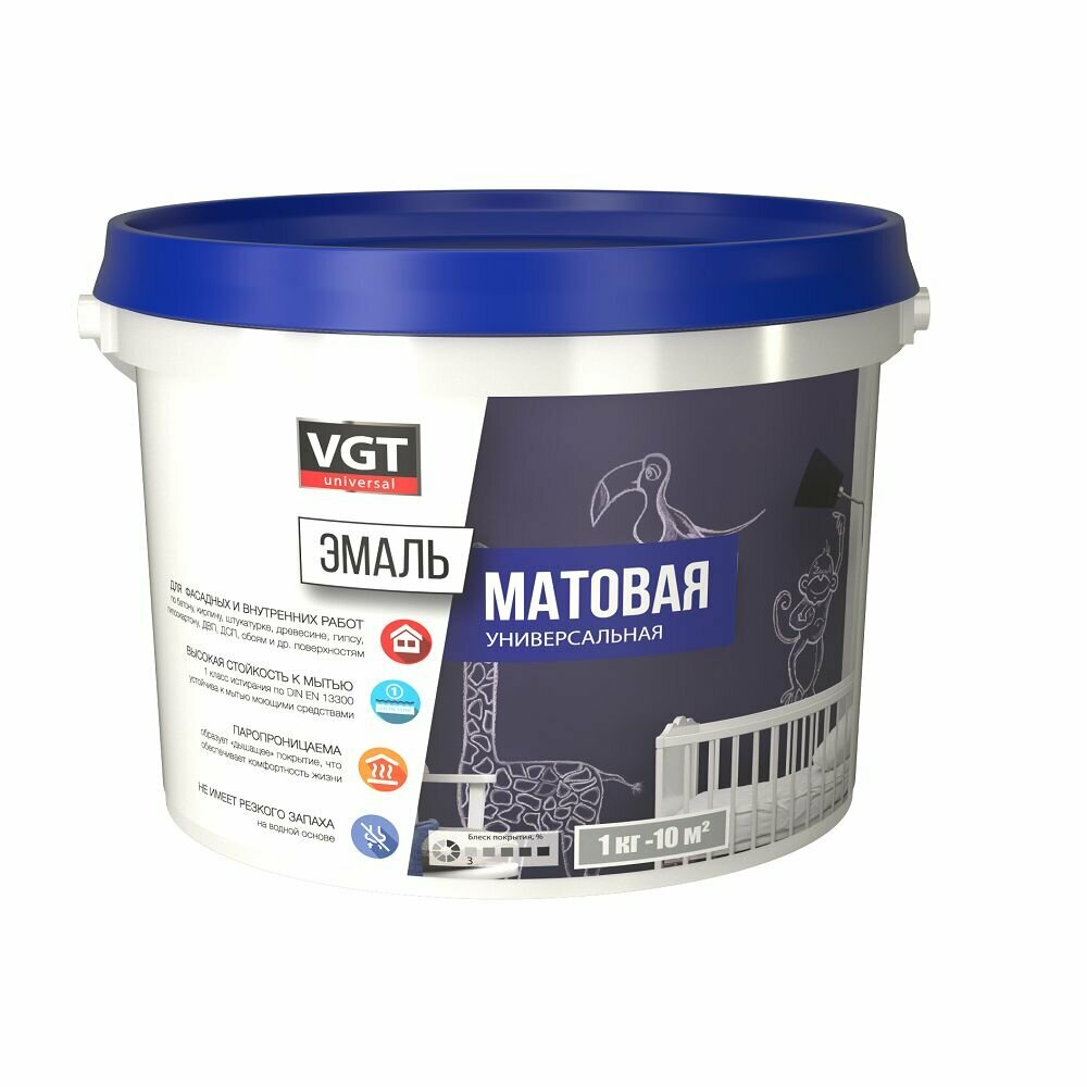 Эмаль универсальная матовая ВД-АК-1179 VGT (1,5кг) супербелый, база А