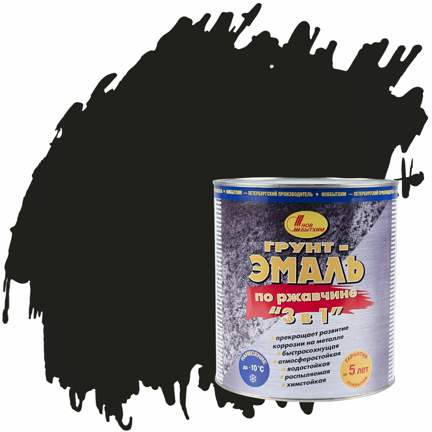 Грунт-эмаль по ржавчине 3 в 1 Новбытхим, 3 л, черная, 1шт, жестяная банка