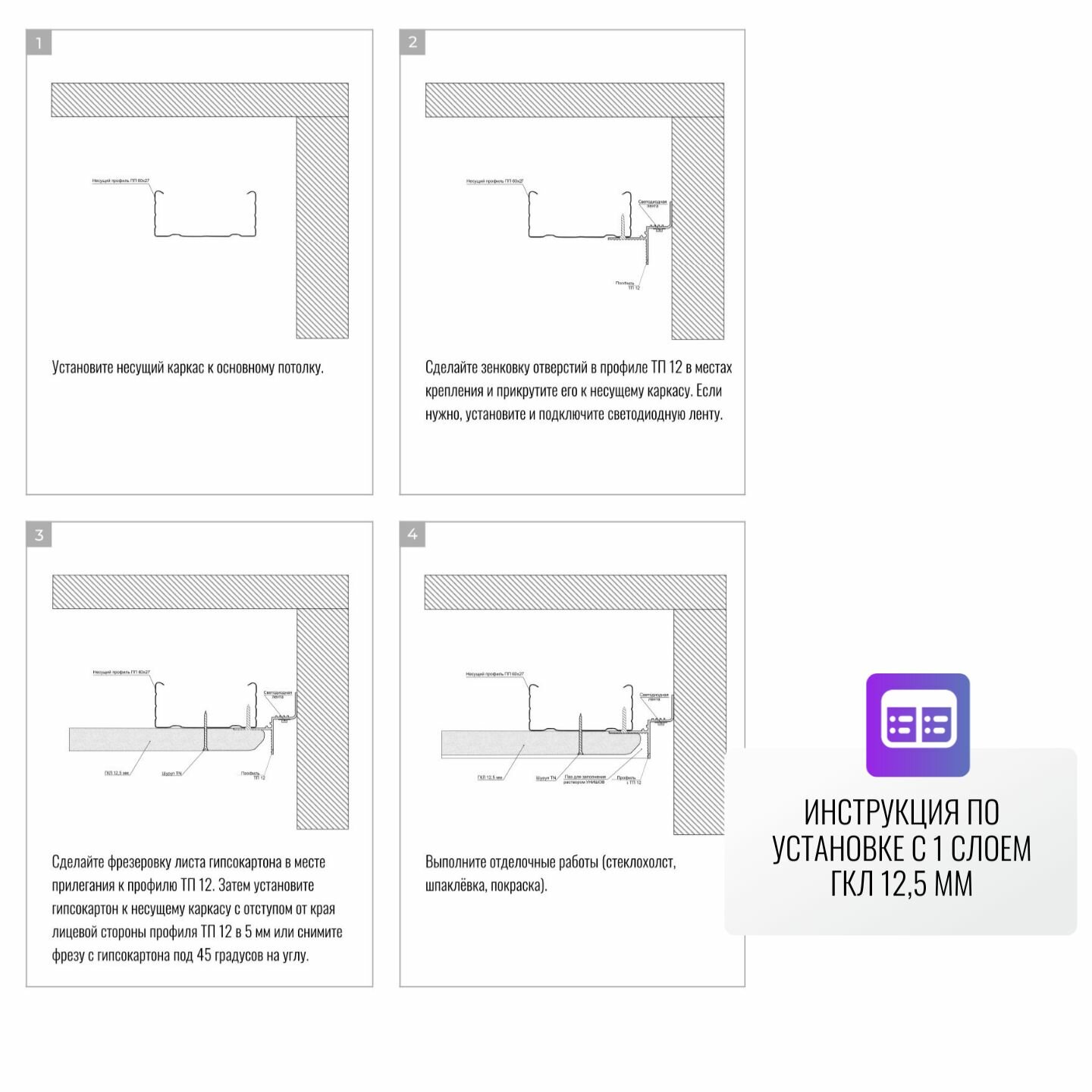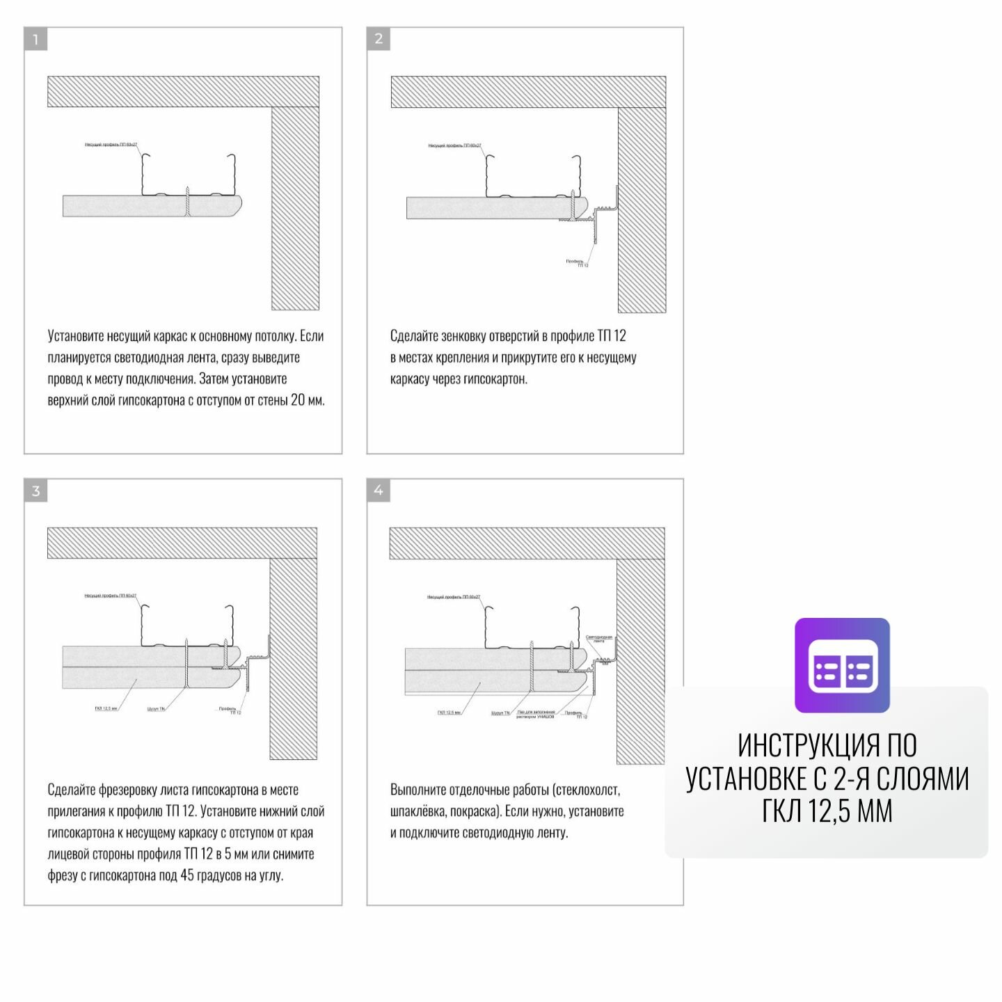 ТП129 Теневой профиль для потолка из ГКЛ толщиной 9,5 мм, 2 м, 10 шт, белый