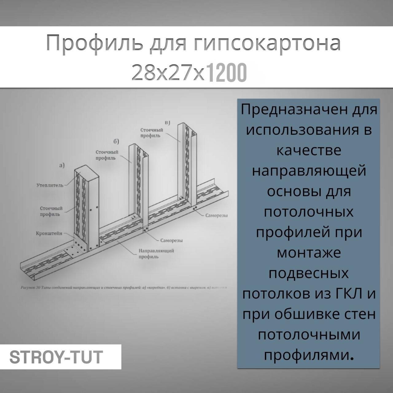 Профиль для гипсокартона , направляющий 28х27х1200 толщина 0,45 мм ( 1 штука) интересное:
