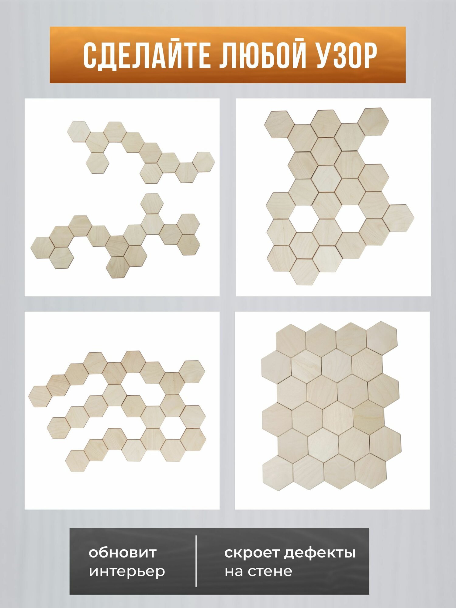Купить Декоративная плитка для стен 24шт / Плитка соты / Панно настенное