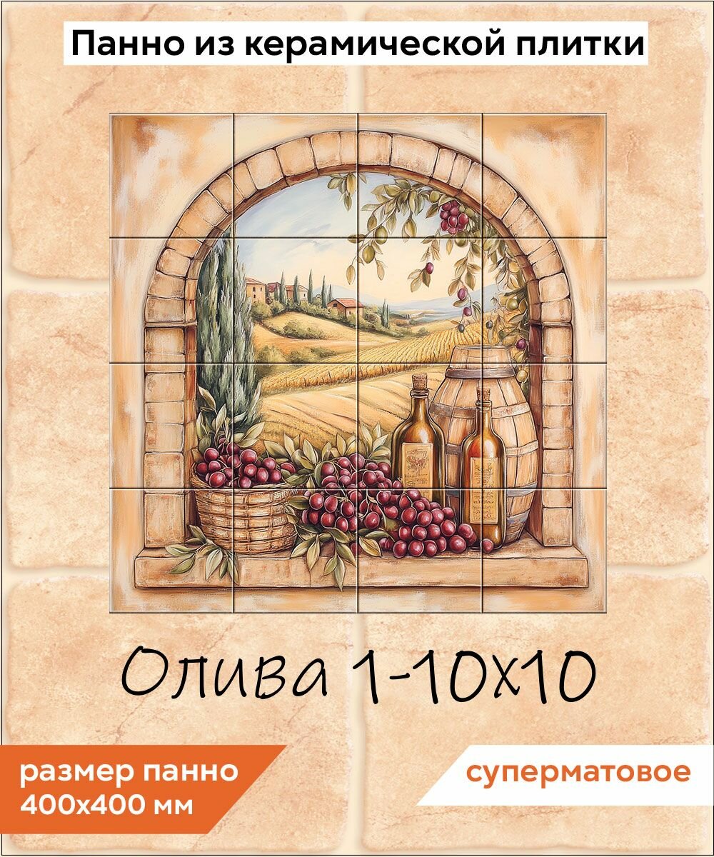 Мини-панно из плитки Fres-co "Олива 1 10х10", керамическое, суперматовое, декоративное, 40х40 см интересное:
