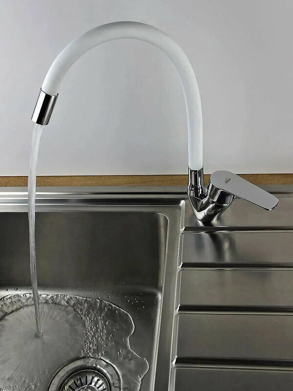 Смеситель для кухни с гибким гнущимся силиконовым изливом V-4148 Белый