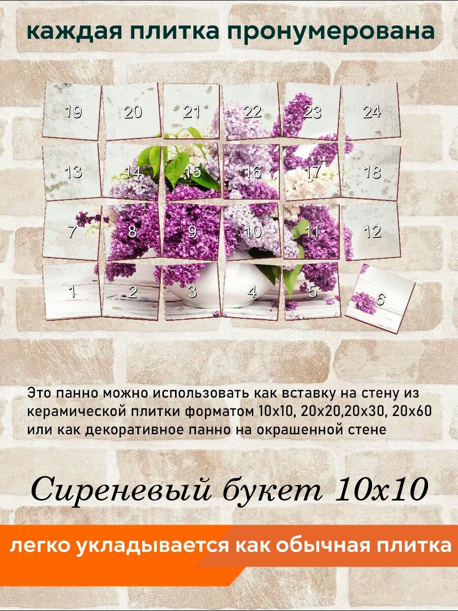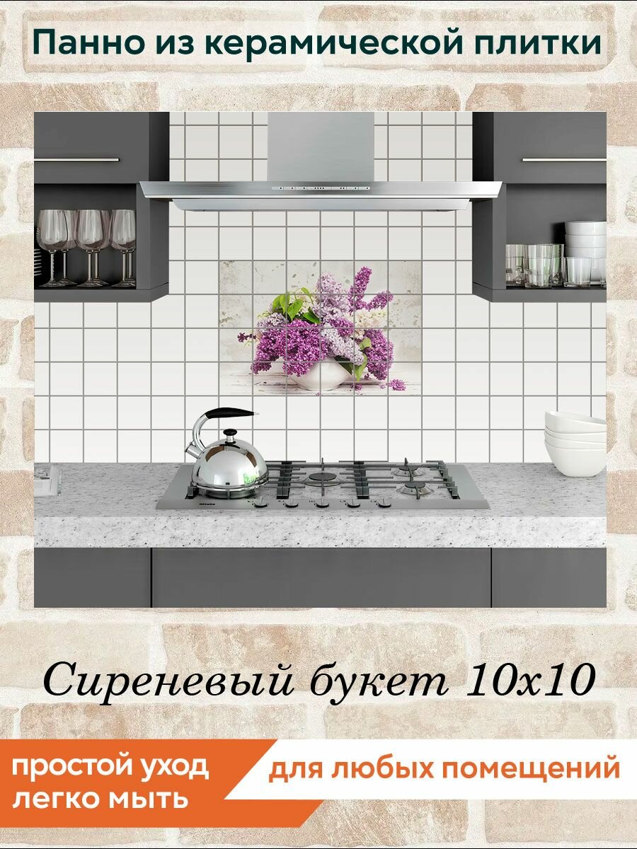 Панно из плитки Fres-co "Сиреневый букет 10х10", керамическое, суперматовое, декоративное, 60х40 см интересное: