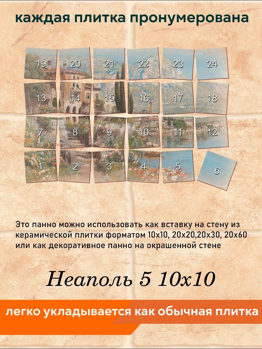 Панно из плитки Fres-co "Неаполь 5 10х10", керамическое, суперматовое, декоративное, 60х40 см интересное: