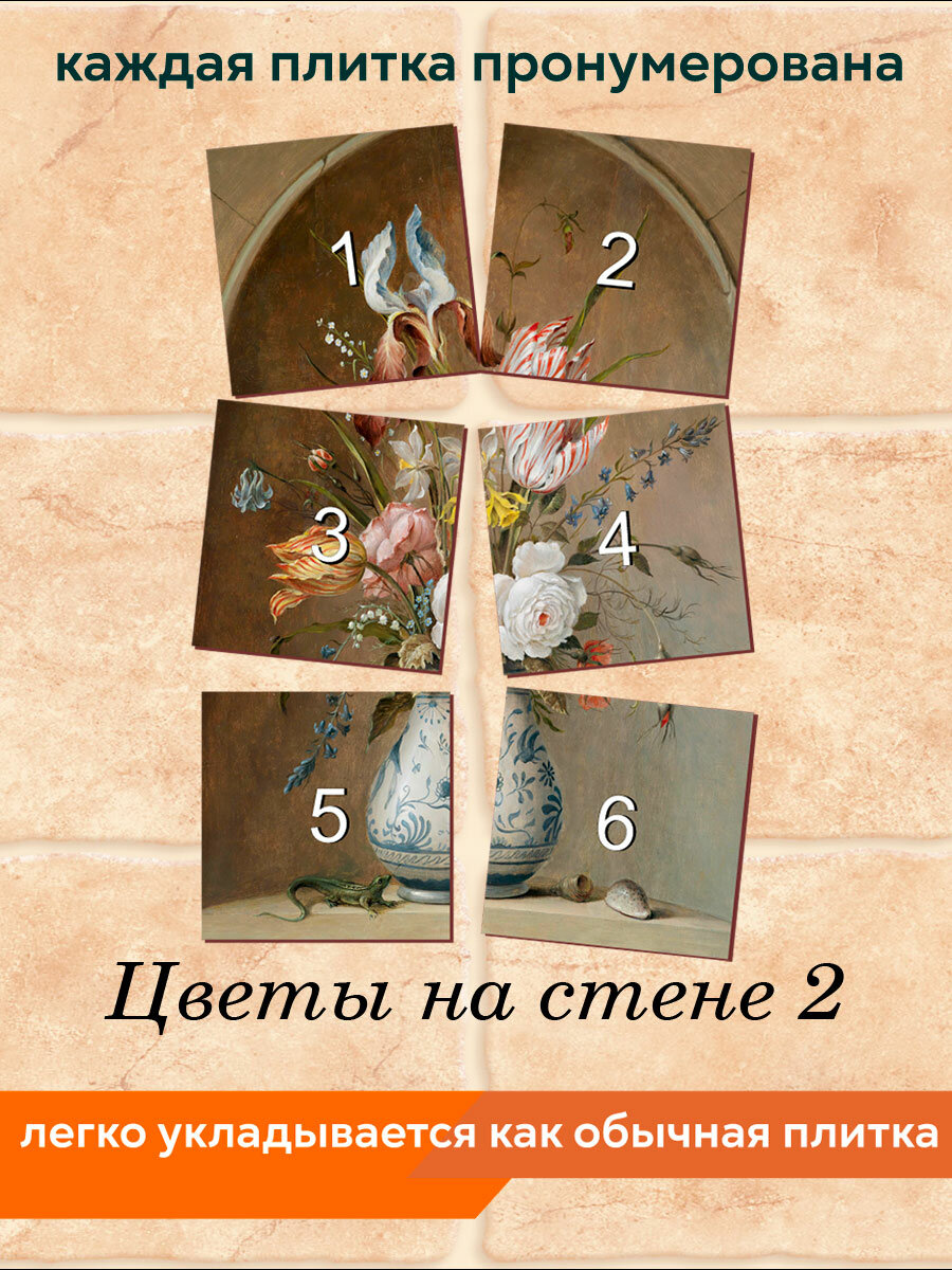 Панно из плитки Fres-co "Цветы на стене 2", керамическое, полуглянцевое, декоративное, 40х60 см интересное: