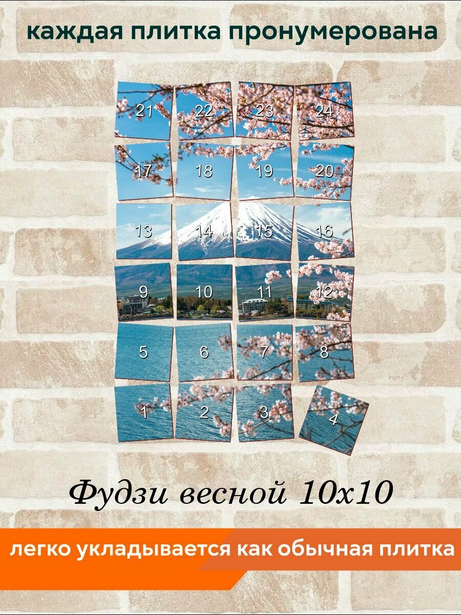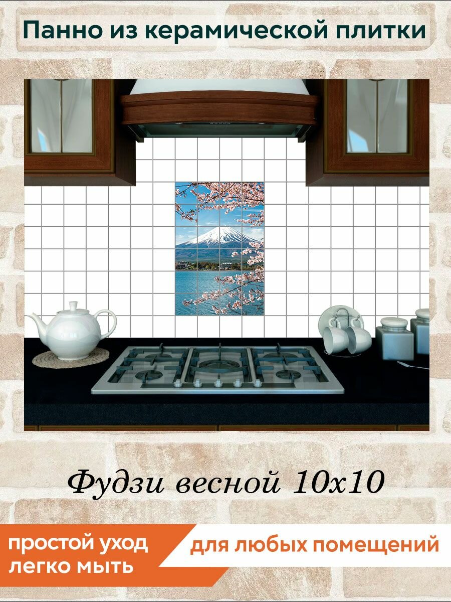 Панно из плитки Fres-co "Фудзи весной 10х10", керамическое, декоративное, суперматовое, 40х60 см интересное:
