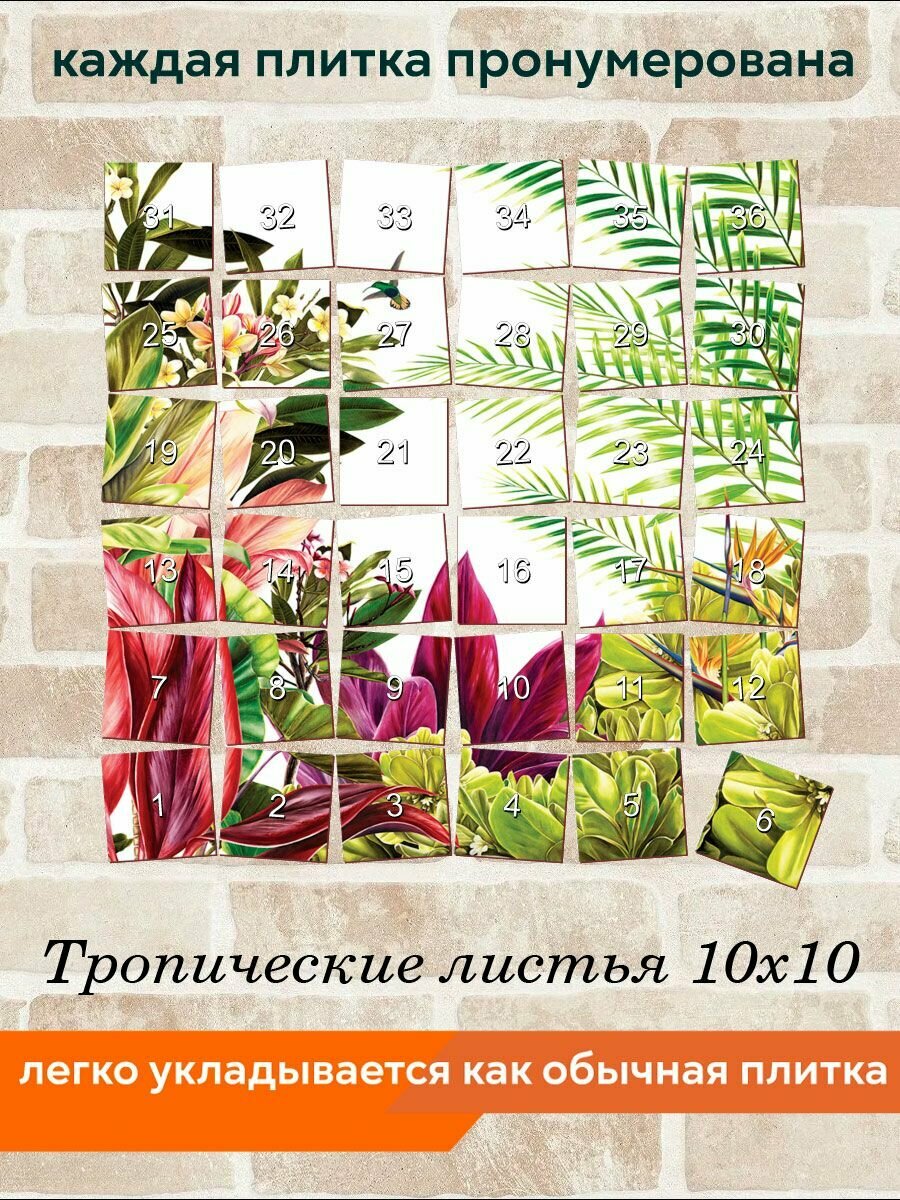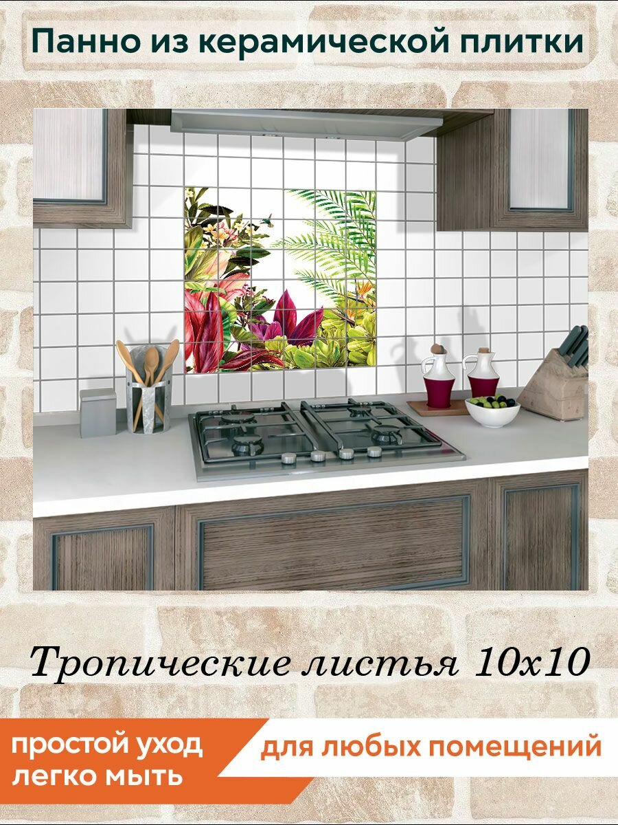Панно из плитки Fres-co "Тропические листья 10х10", керамическое, декоративное, суперматовое, 60х60 см интересное: