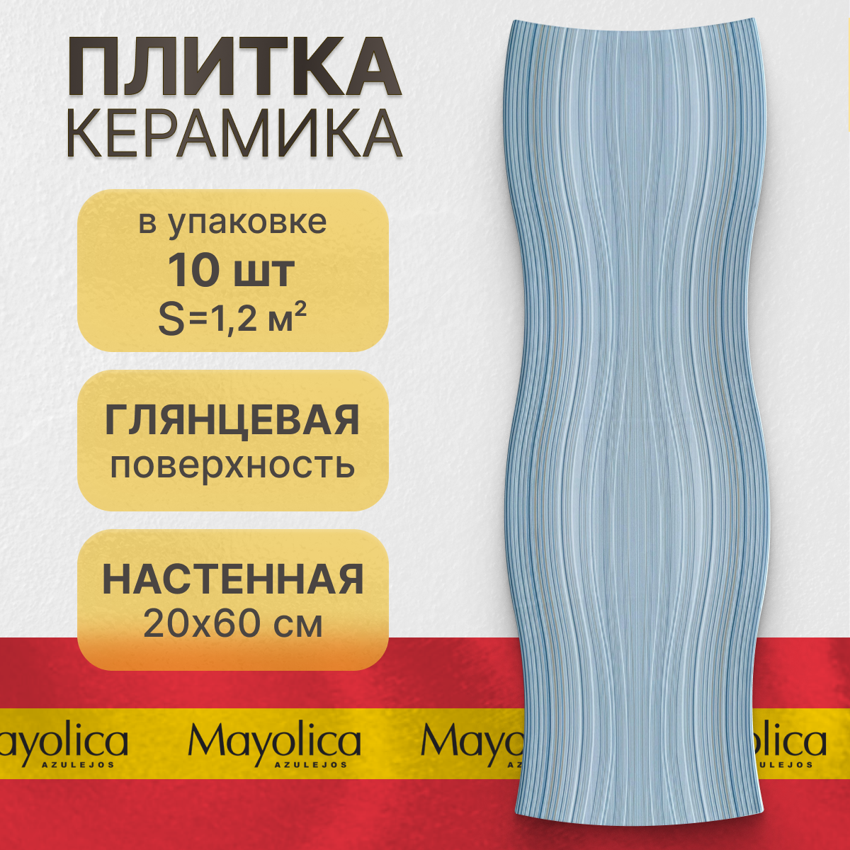 Купить Керамическая плитка, настенная Mayolica Siroco azul 20х60 см (1,2 м²)