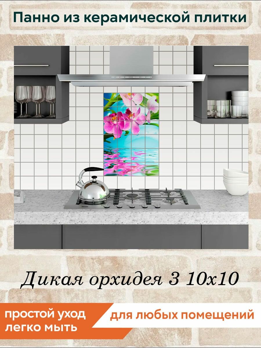 Панно из плитки Fres-co "Дикая орхидея 3 10х10", керамическое, суперматовое, с рисунком, 40х60 см интересное: