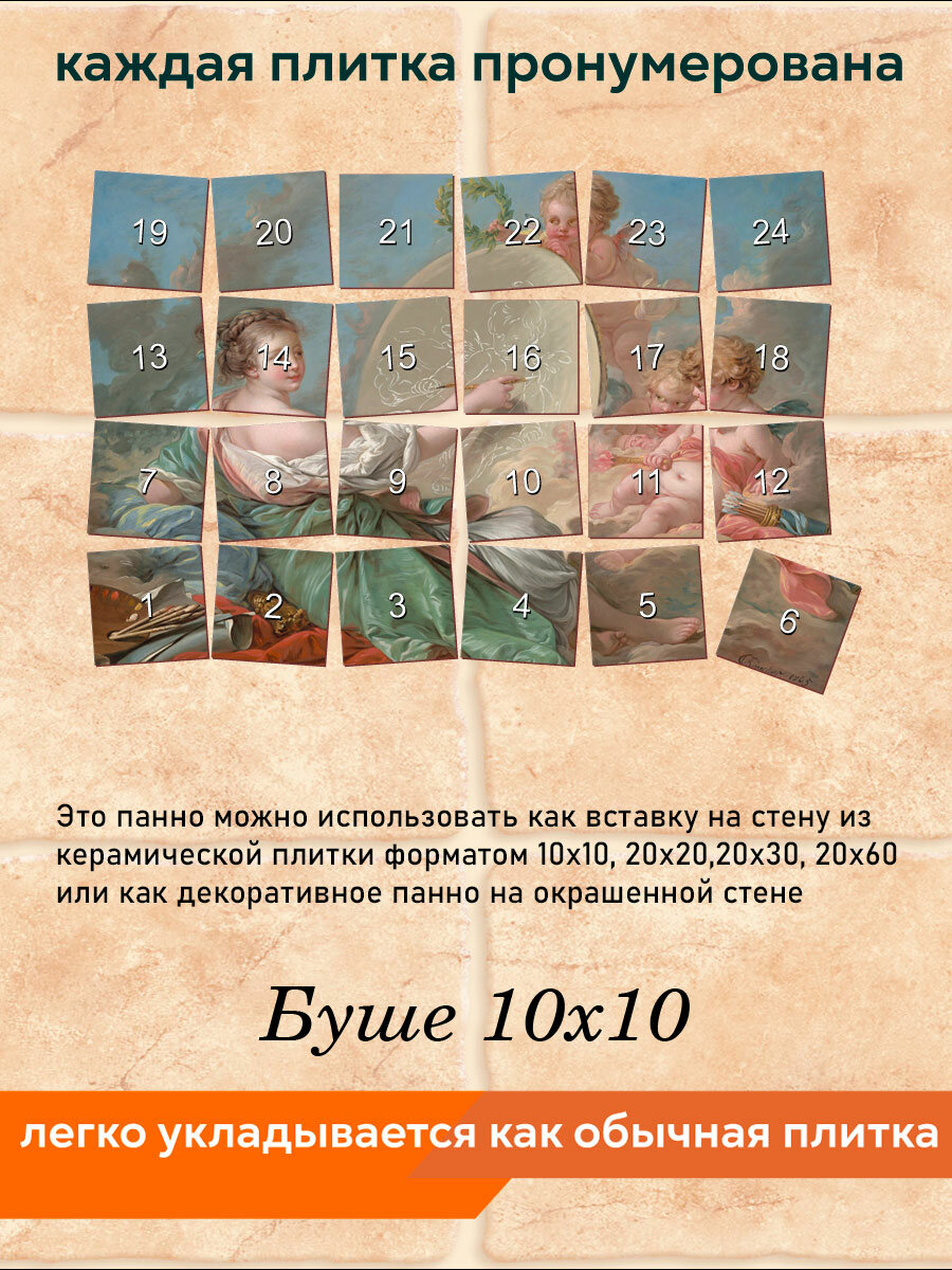 Панно из плитки Fres-co "Буше 10х10", керамическое, суперматовое, с фотопечатью, 60×40 см интересное: