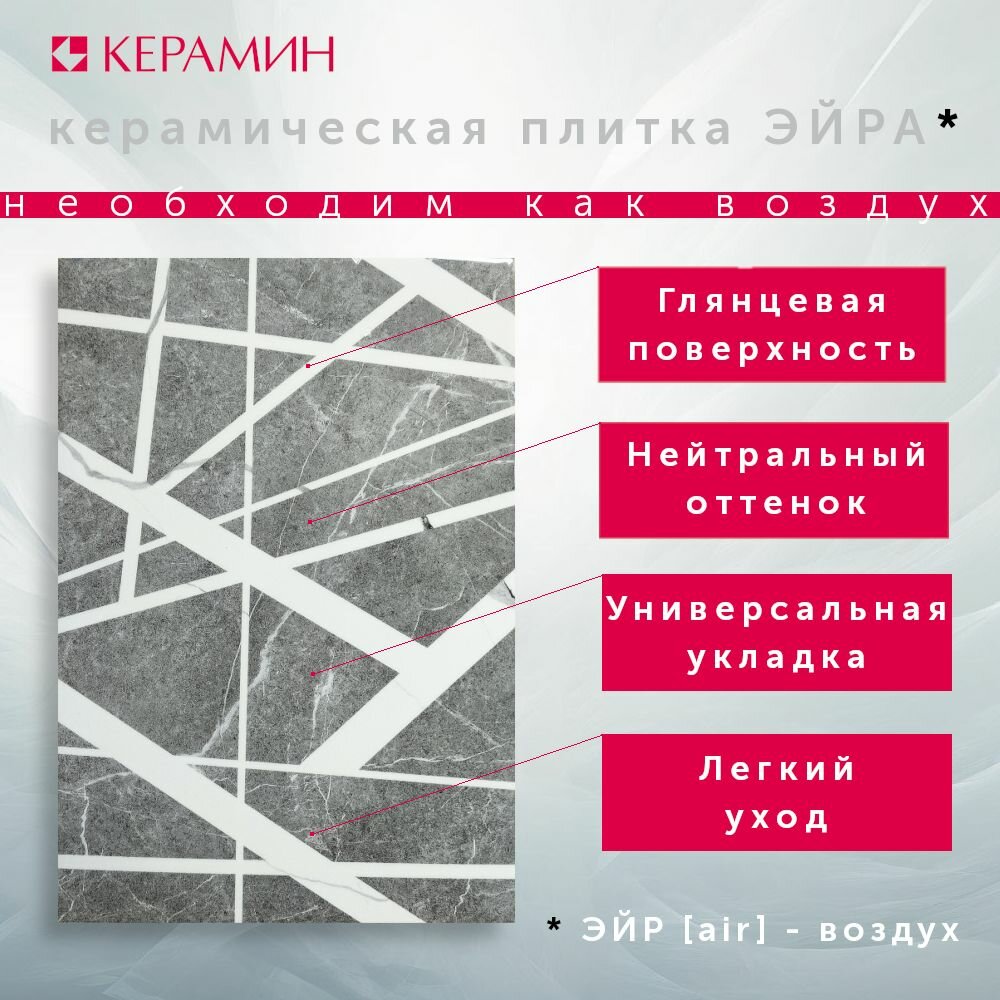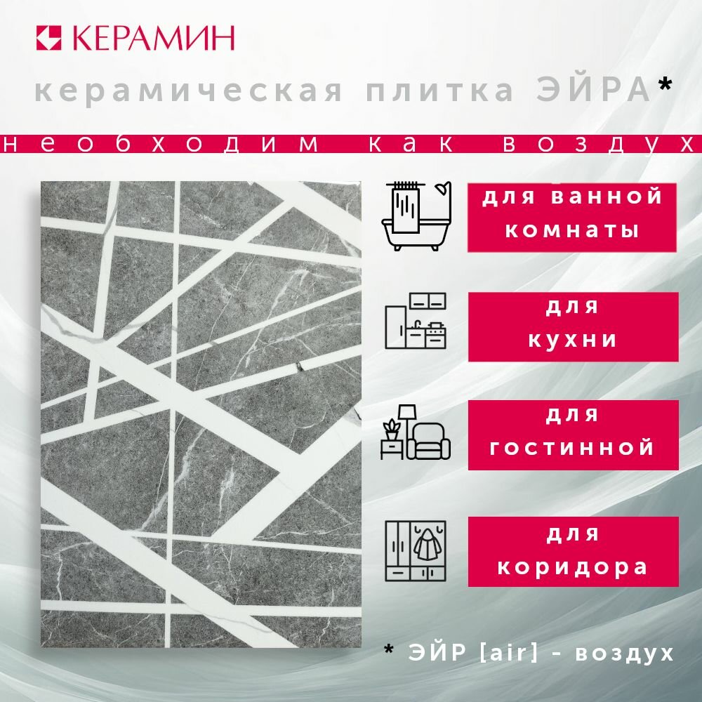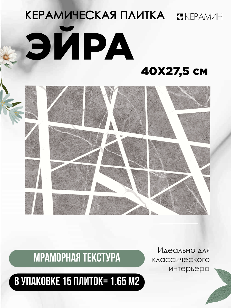Плитка керамическая для стен Керамин Эйра 1Д серо-белый 40х27,5 см (15 шт 1,65 м2) интересное: