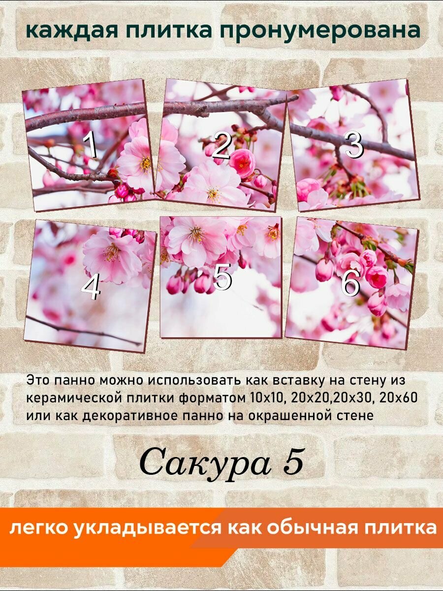 Панно из плитки Fres-co "Сакура 5" керамическое, декоративное, полуглянцевое, 60х40 см интересное: