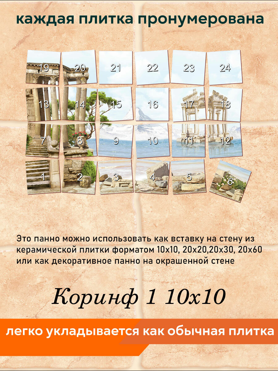 Панно из плитки Fres-co "Коринф 1 10х10", керамическое, суперматовое, с фотопечатью, 60×40 см интересное: