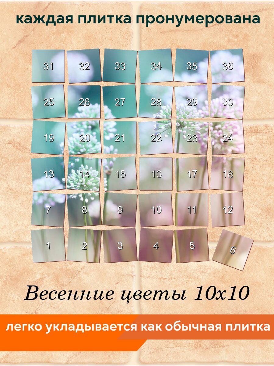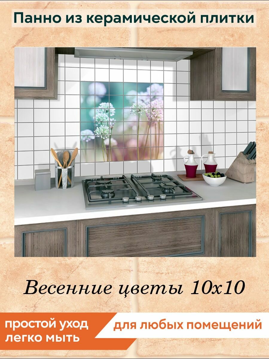 Панно из плитки Fres-co "Весенние цветы 10х10", керамическое, декоративное, суперматовое, 60x60 см интересное: