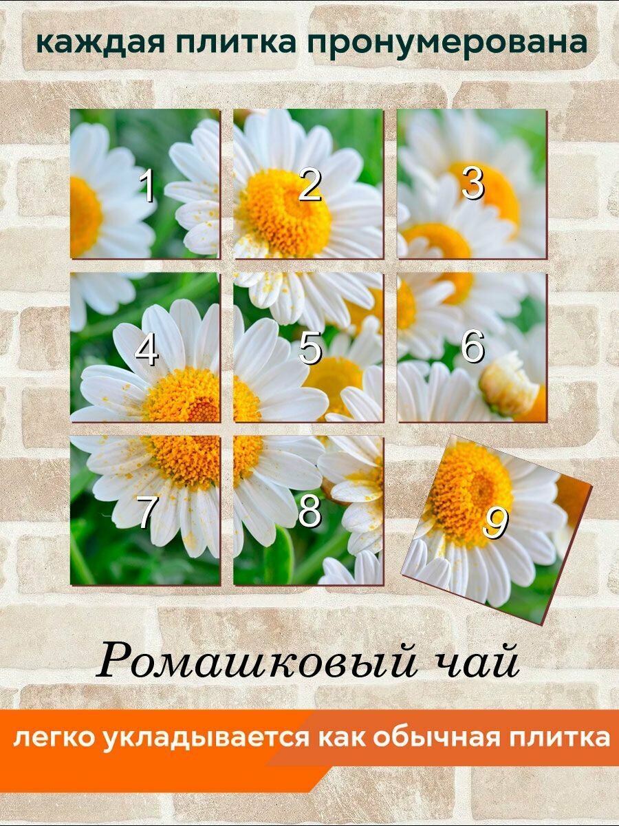 Панно из плитки Fres-co "Ромашковый чай", керамическое, декоративное, полуглянцевое, 60x60 см интересное: