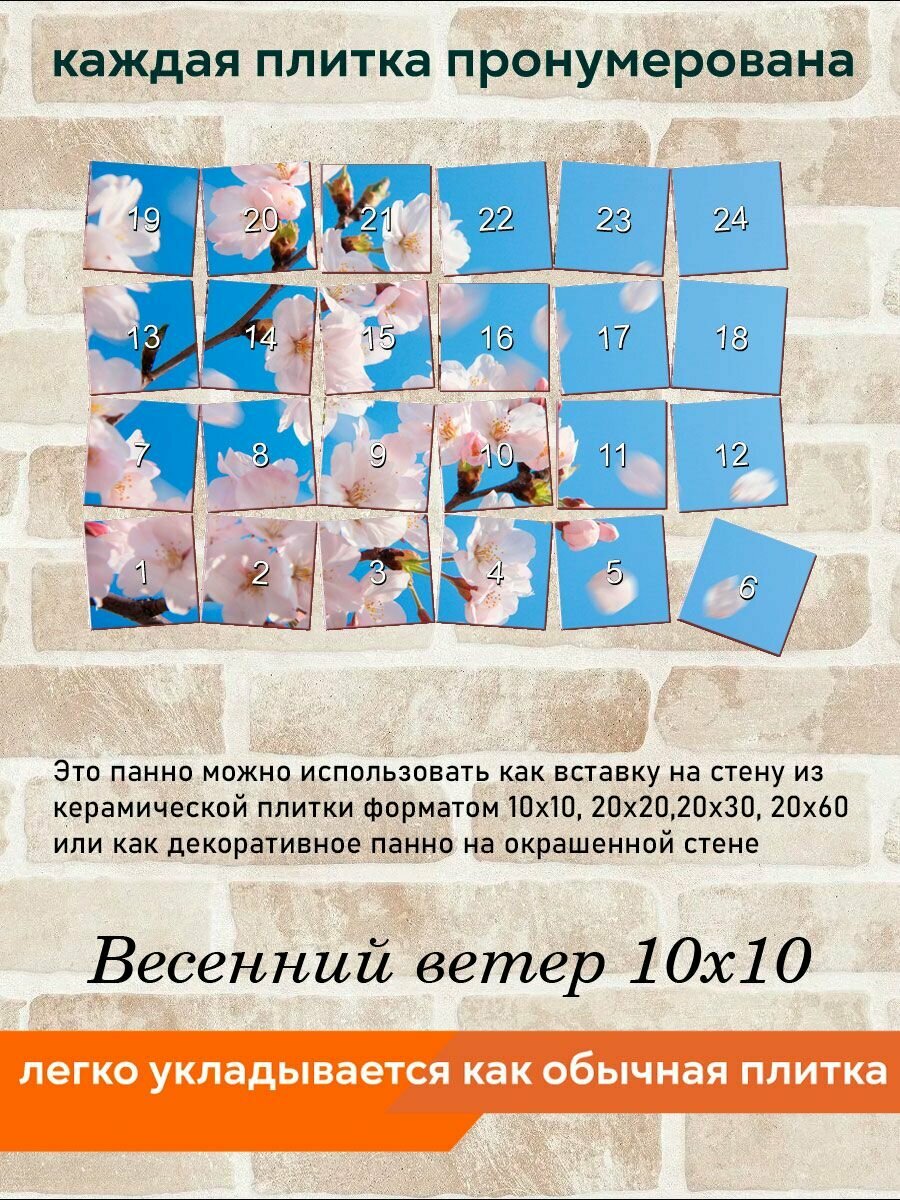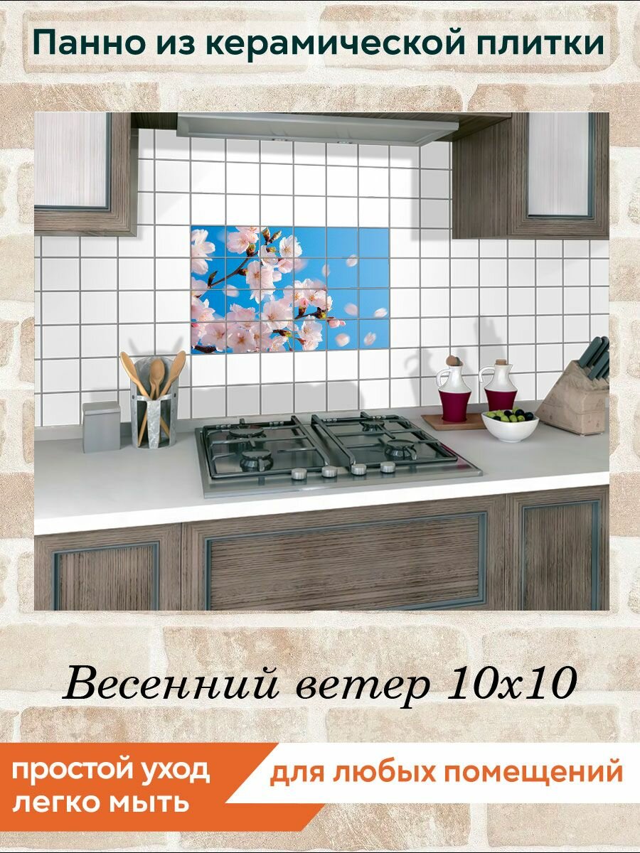 Панно из плитки Fres-co "Весенний ветер 10х10", керамическое, суперматовое, с рисунком, 60х40 см интересное: