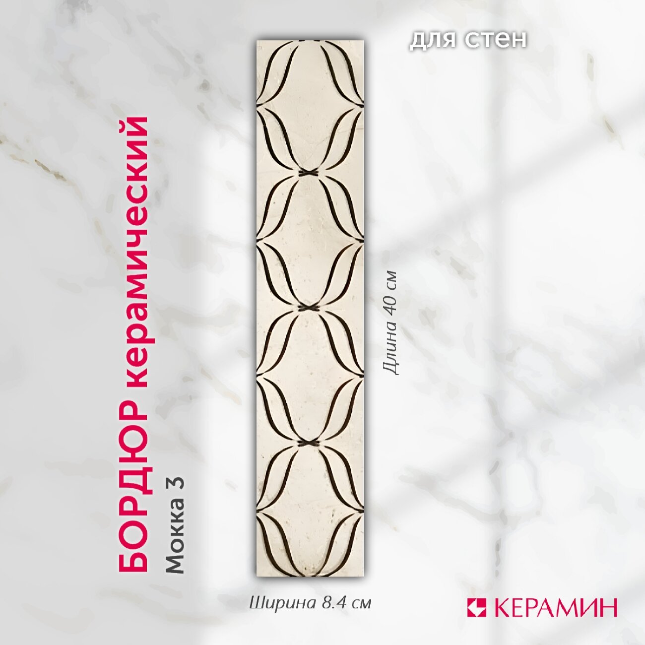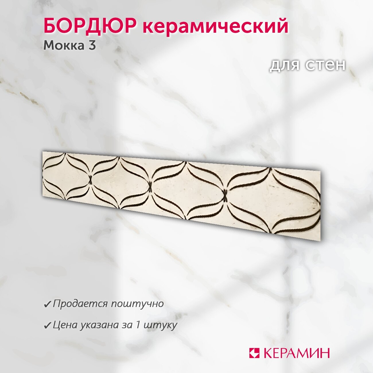 Плитка-бордюр керамическая Керамин Мокка 3 40х8.4 см, коричневый (1 шт) интересное: