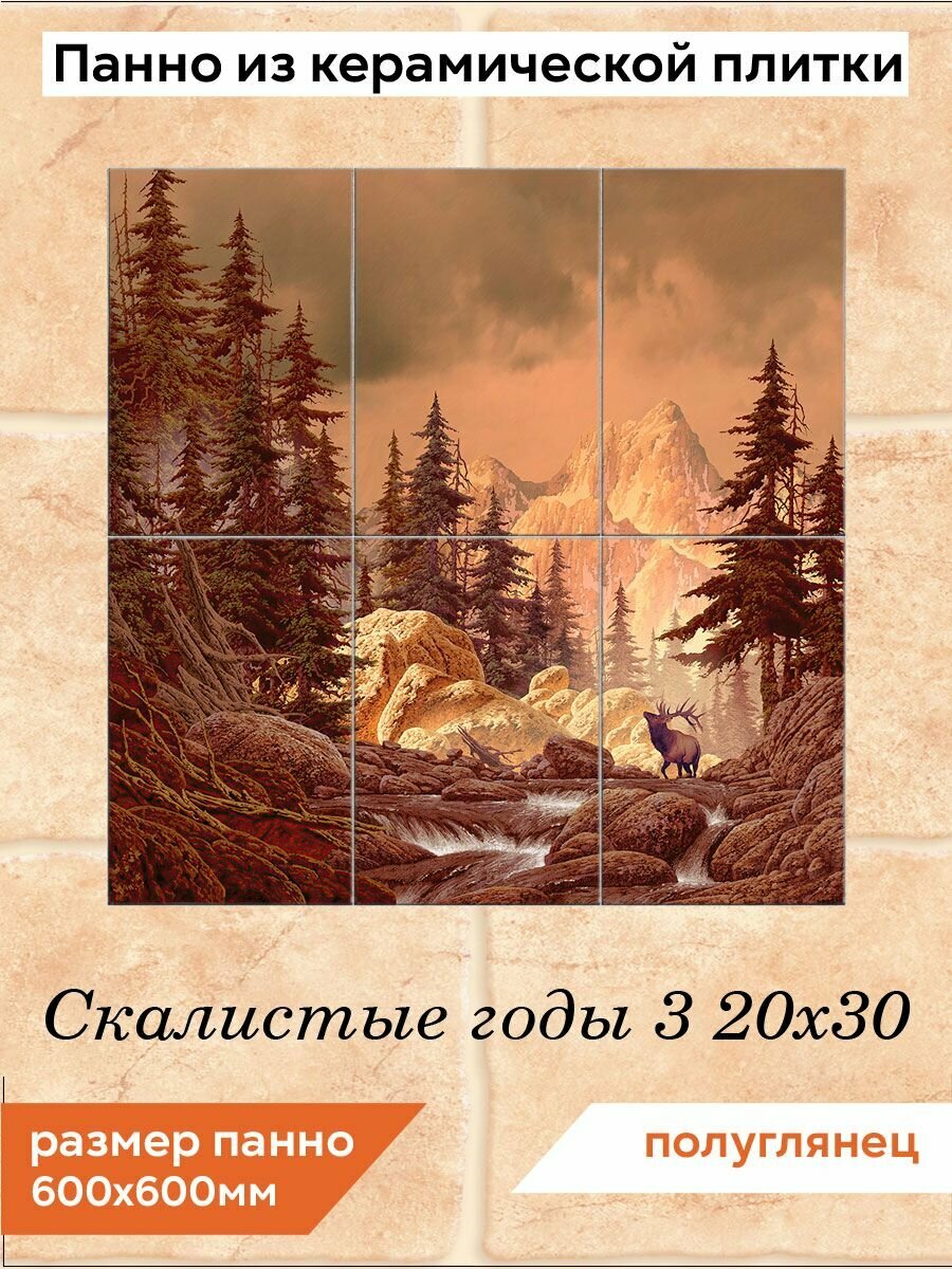 Панно из плитки Fres-co "Скалистые горы 3 20х30" керамическое, декоративное, полуглянцевое, 60х60 см интересное: