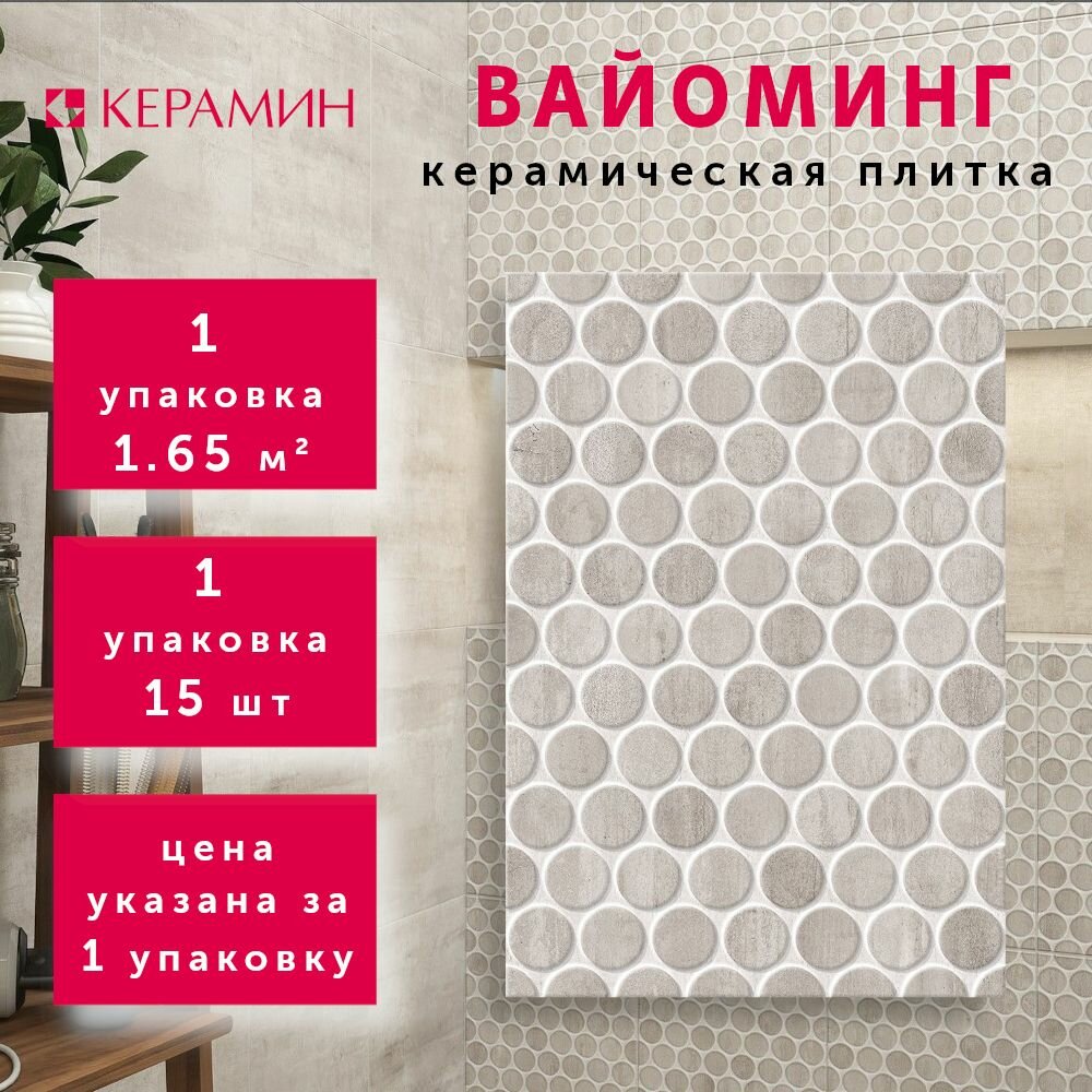 Плитка керамическая для стен Керамин Вайоминг 1Д серые круги 400х275 мм (15 шт 1,65 м2) интересное: