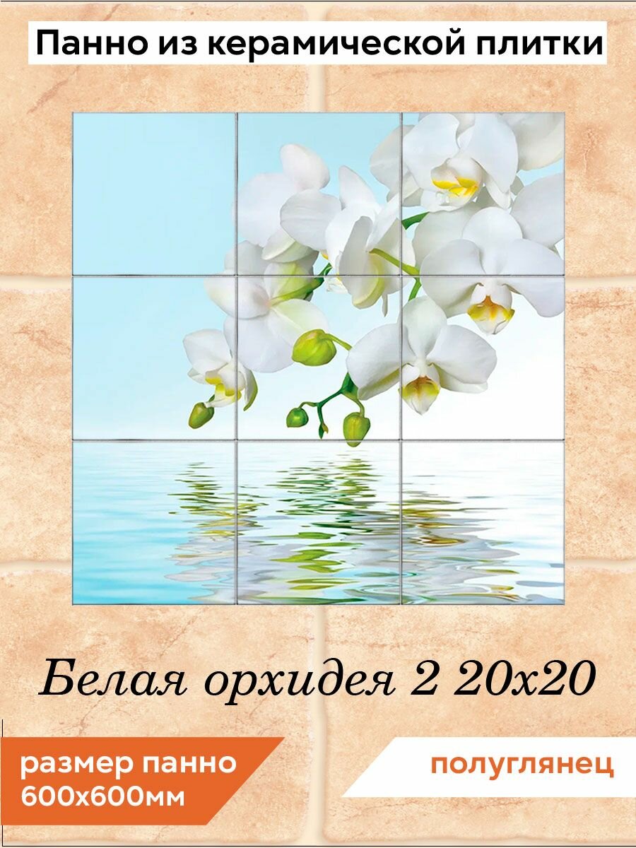 Панно из плитки Fres-co "Белая орхидея 2", керамическое, декоративное, полуглянцевое 60х60 см интересное: