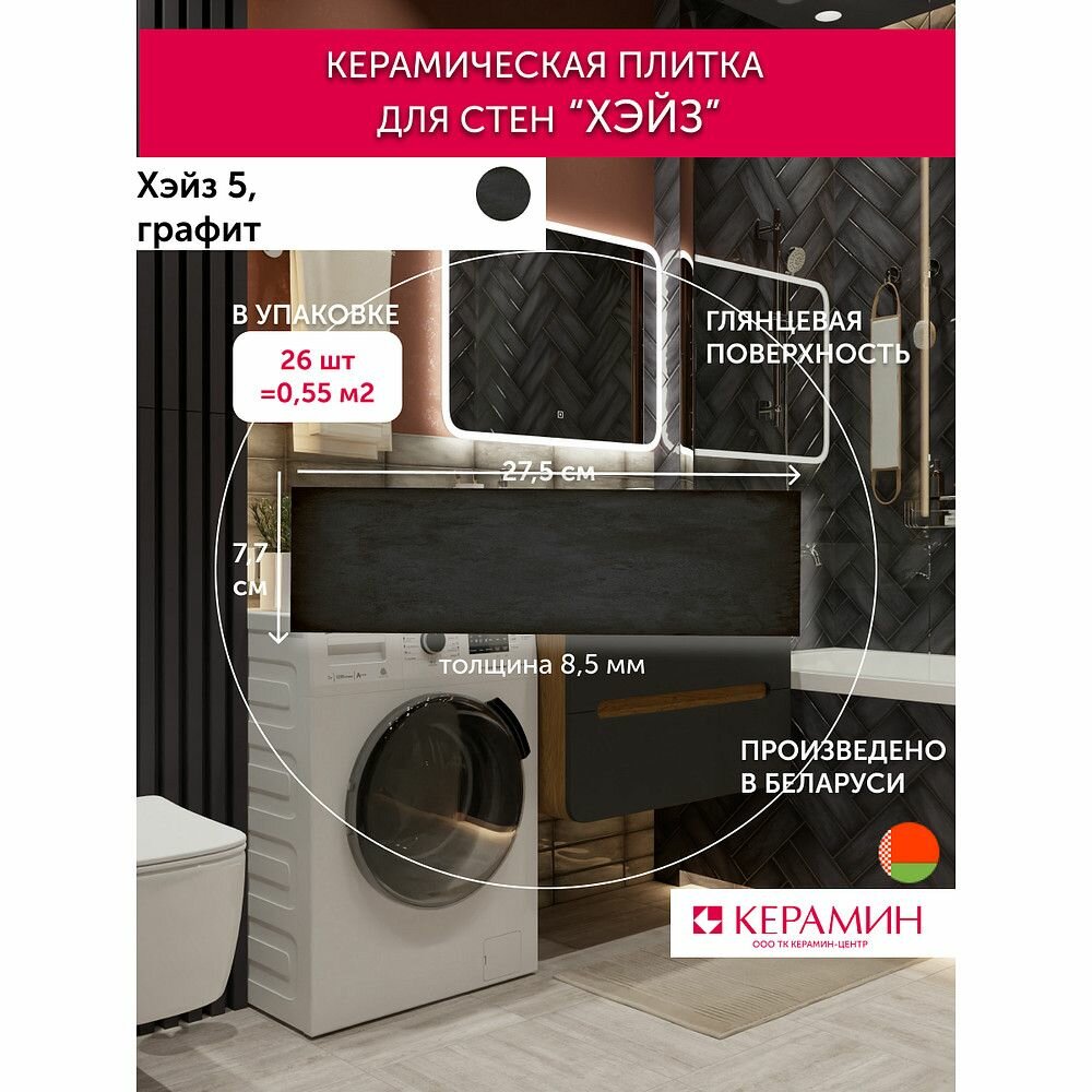 Плитка керамическая для стен Керамин Хэйз 5 графит 275х77,5 мм 26 шт (0,55 м2) интересное: