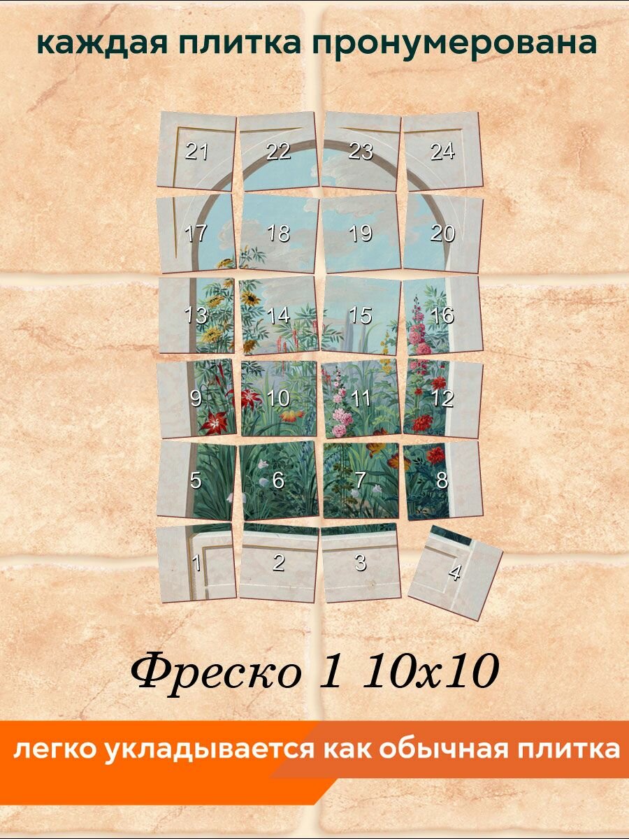 Панно из плитки Fres-co "Фреско 1 10х10", керамическое, суперматовое, декоративное, 40х60 см интересное: