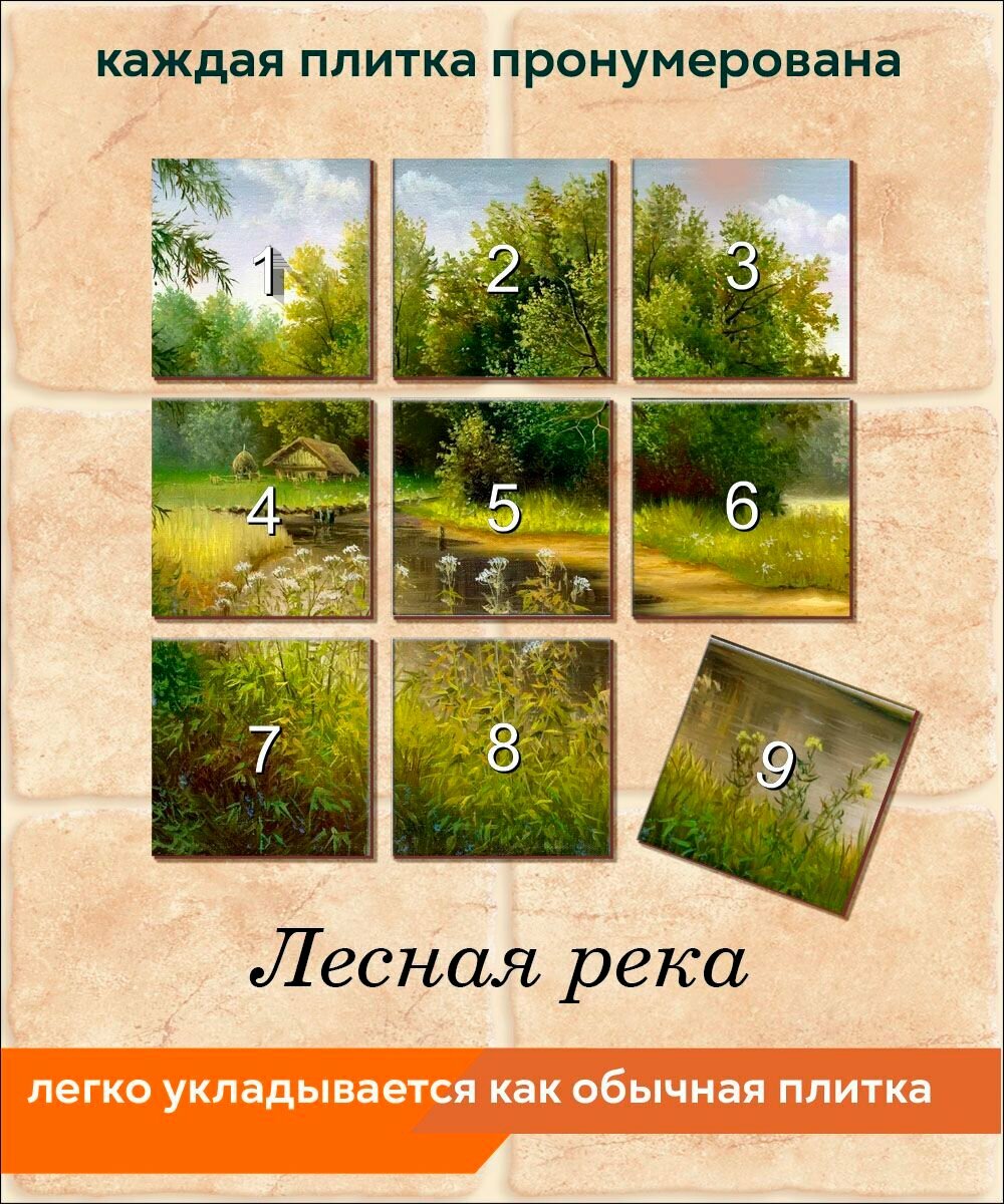 Панно из плитки Fres-co "Лесная река", керамическое, декоративное, полуглянцевое 60x60 см интересное: