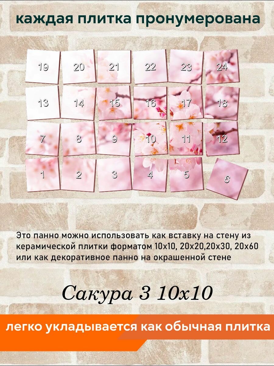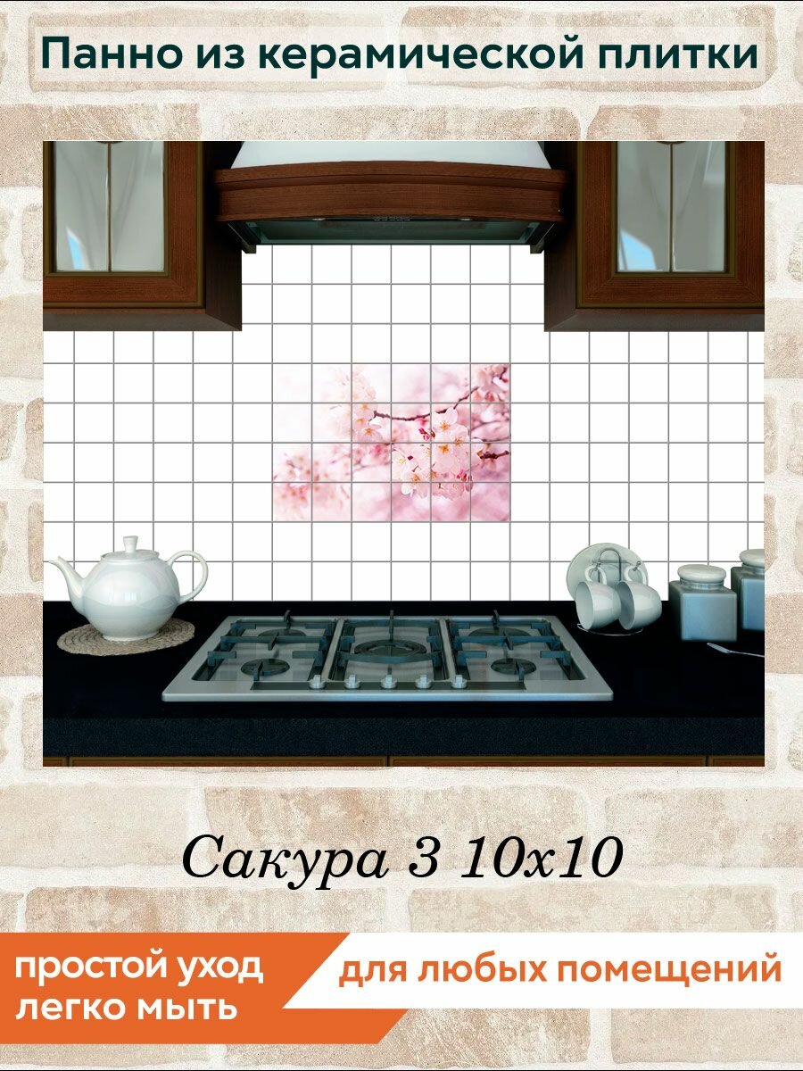 Панно из плитки Fres-co "Сакура 3 10х10", керамическое, декоративное, суперматовое, 60х40 см интересное:
