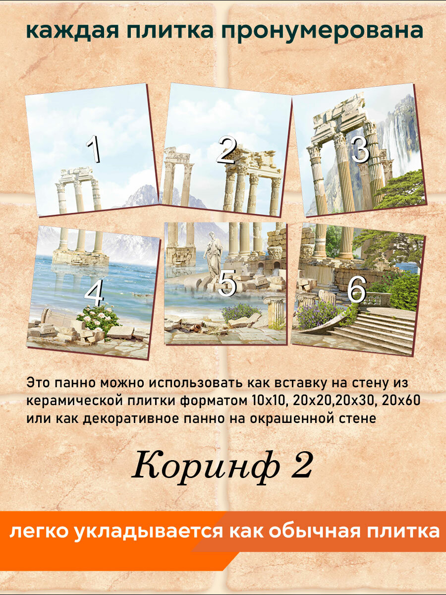 Панно из плитки Fres-co "Коринф 2", керамическое, полуглянцевое, с рисунком, 60х40 см интересное: