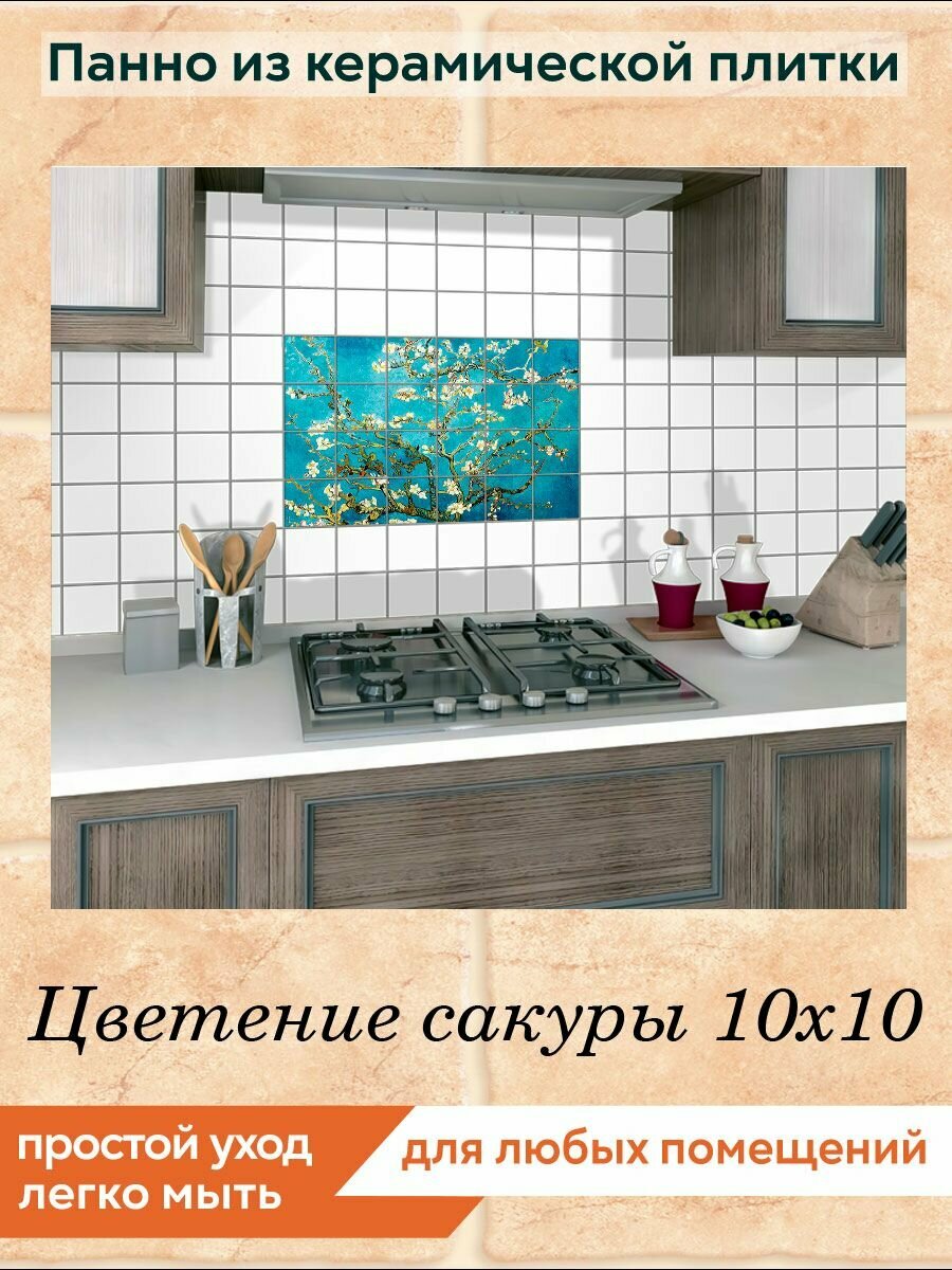 Панно из плитки Fres-co "Цветение сакуры 10х10", керамическое, суперматовое, декоративное 60x40 см интересное: