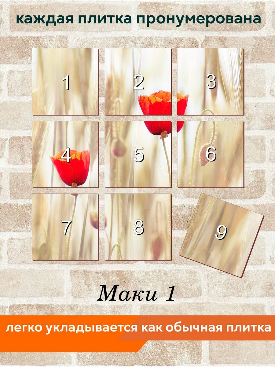 Панно из плитки Fres-co "Маки 1" керамическое, декоративное, полуглянцевое, 60х60 см интересное: