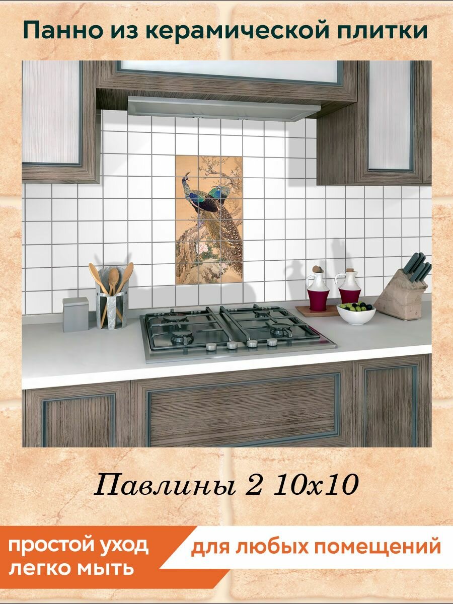 Панно из плитки Fres-co "Павлины 2 10х10", керамическое, суперматовое, декоративное, 30х60 см интересное: